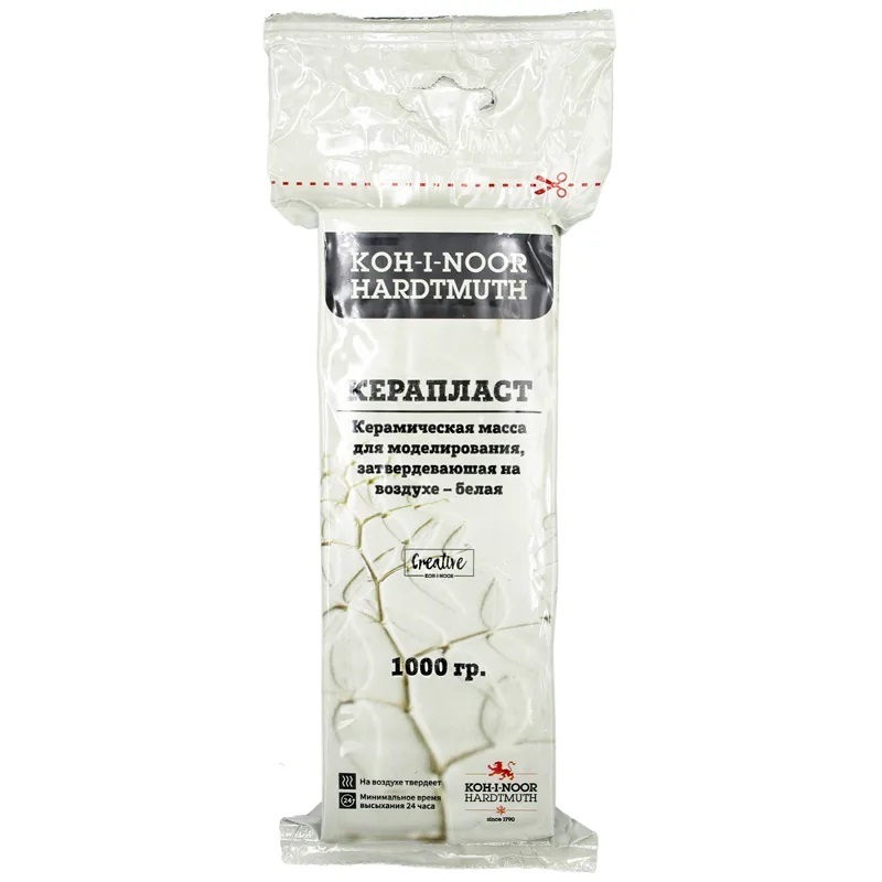 Керамическая масса Koh-I-Noor самозатвердевающая. Применяется для лепки различных декоративных элементов интерьера, украшений, мелких фигурок, скульптур и т.п. В использовании масса достаточно мягкая, липнущая к рукам. При работе с ней рекомендуется смачивать руки водой. Время отвердения зависит от толщины изделия: масса толщиной до 20 мм. высыхает за 24 часа. Затвердевшее и высохшее изделие можно обрабатывать, раскрашивать и лакировать. Вес: 1 кг. Цвет: белый.