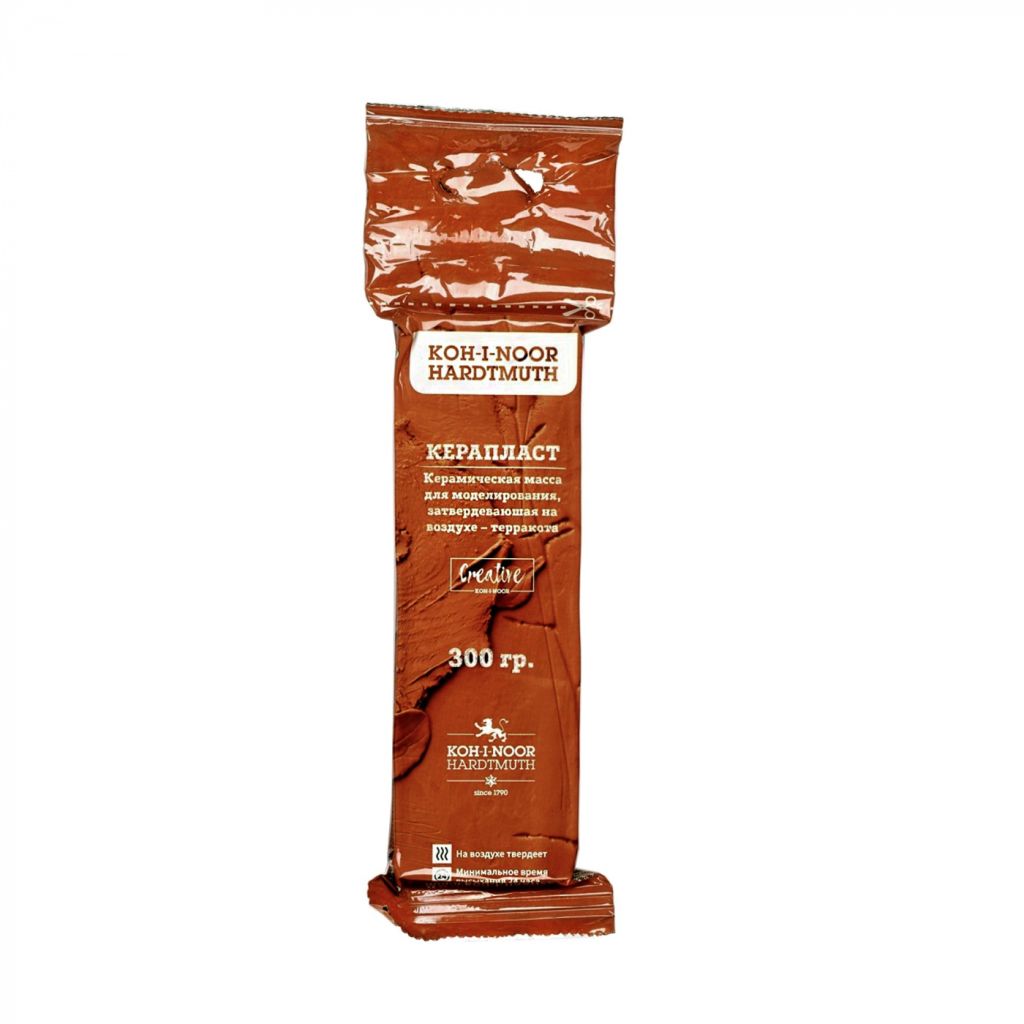 Керамическая масса Koh-I-Noor самозатвердевающая. Применяется для лепки различных декоративных элементов интерьера, украшений, мелких фигурок, скульптур и т.п. В использовании масса достаточно мягкая, липнущая к рукам. При работе с ней рекомендуется смачивать руки водой. Время отвердения зависит от толщины изделия: масса толщиной до 20 мм. высыхает за 24 часа. Затвердевшее и высохшее изделие можно обрабатывать, раскрашивать и лакировать. Вес: 300 г. Цвет: терракот.