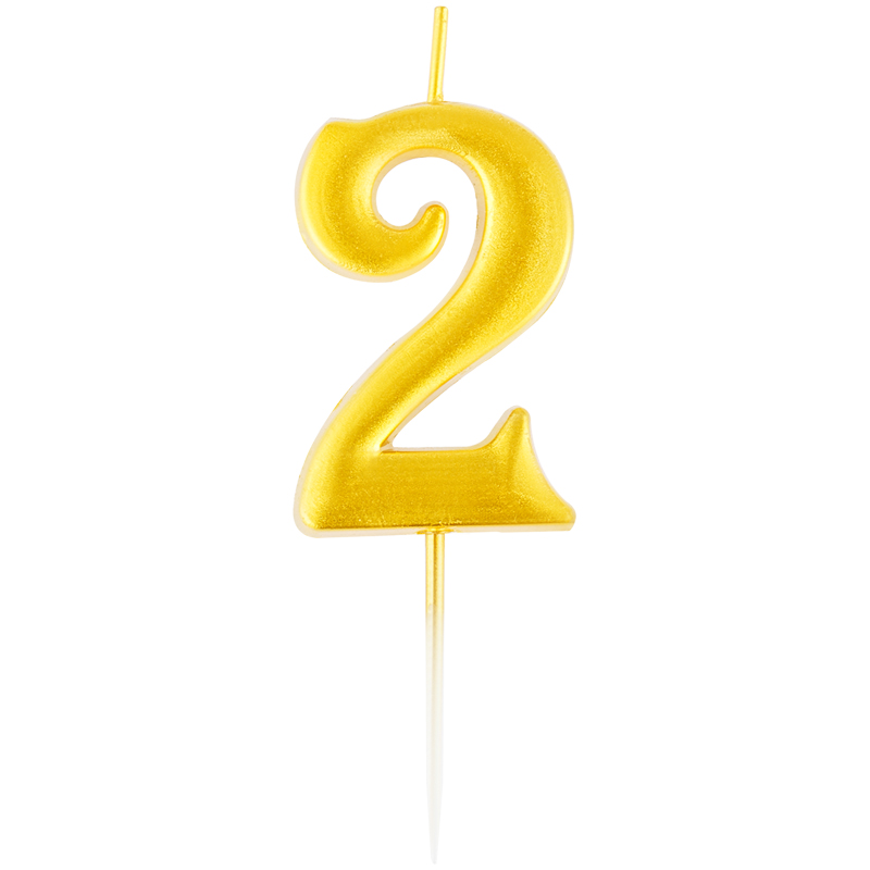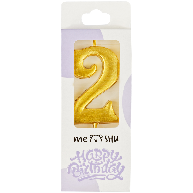 Свеча для торта с держателем MESHU "Цифра 2", 5,2 см, золотая