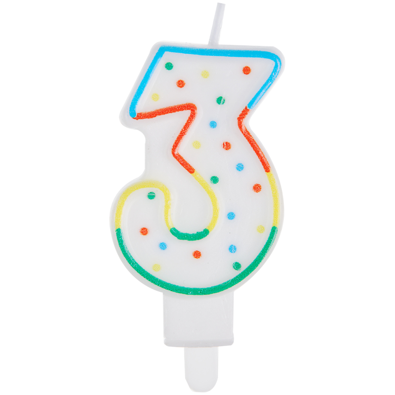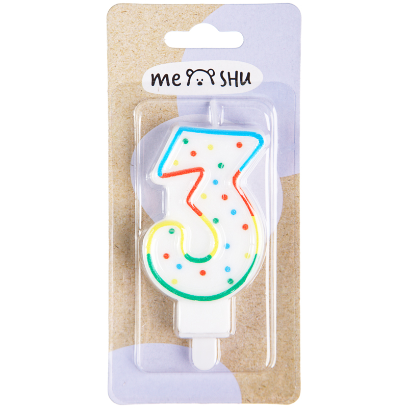 Свеча для торта с держателем MESHU "Цифра 3", 8,5 см, блистер
