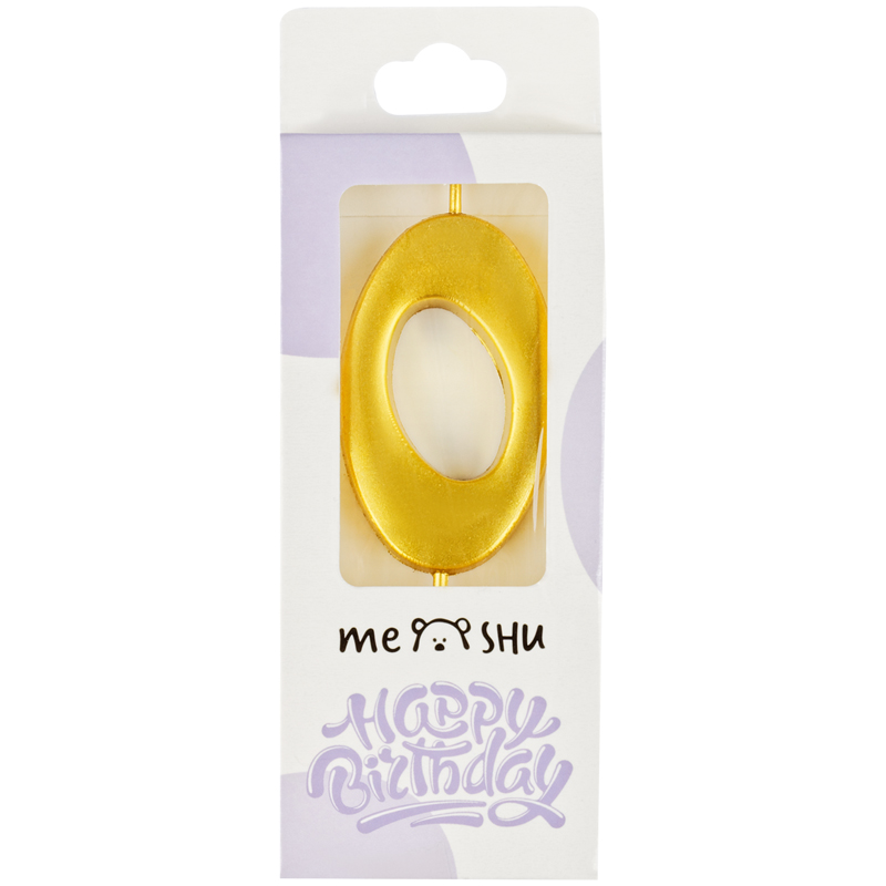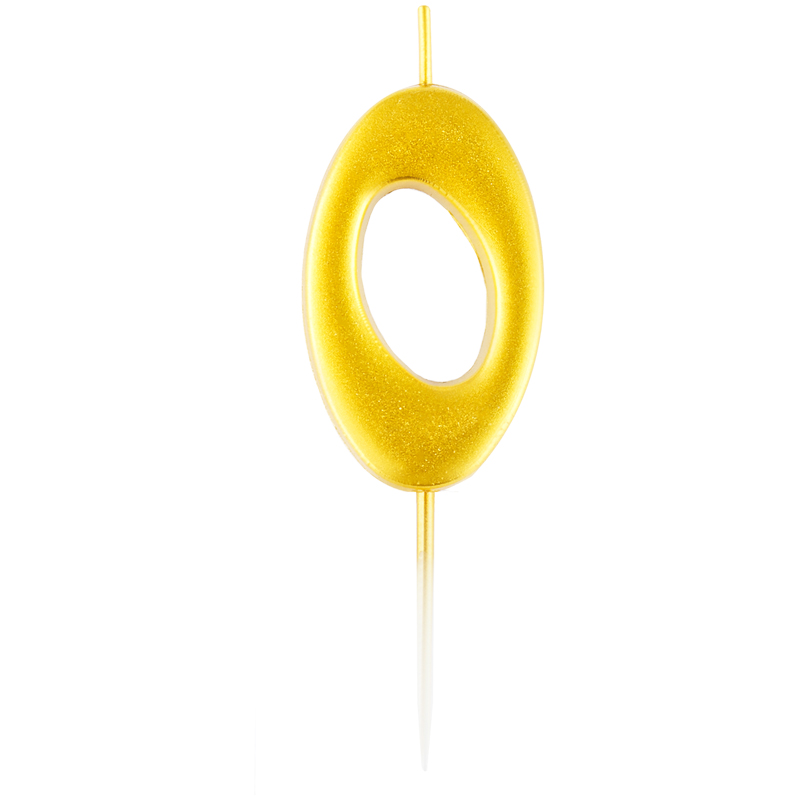 Свеча для торта с держателем MESHU "Цифра 0", 5,2 см, золотая