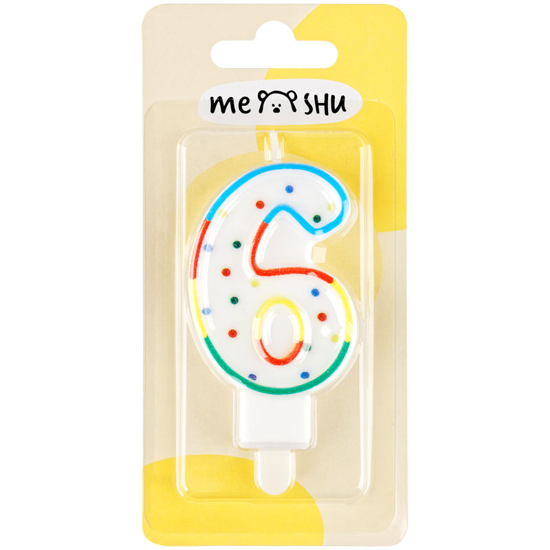 Свеча для торта с держателем MESHU "Цифра 6", 8,5 см, блистер