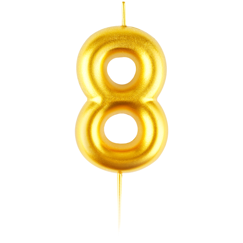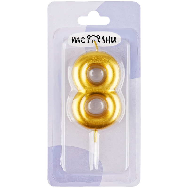 Свеча для торта с держателем MESHU "Цифра 8", 6 см, золотая, блистер