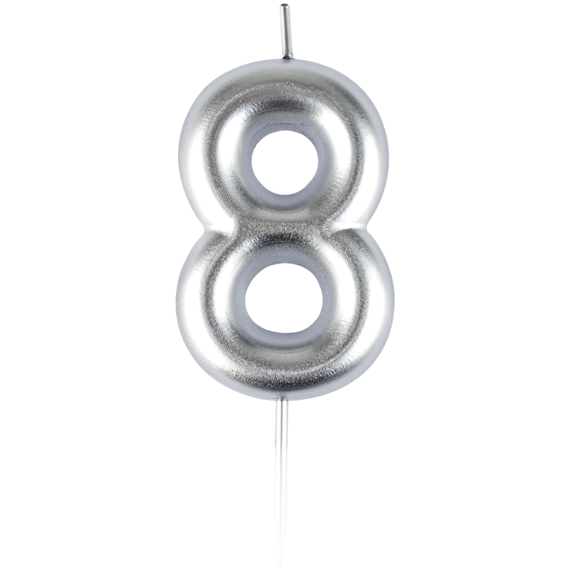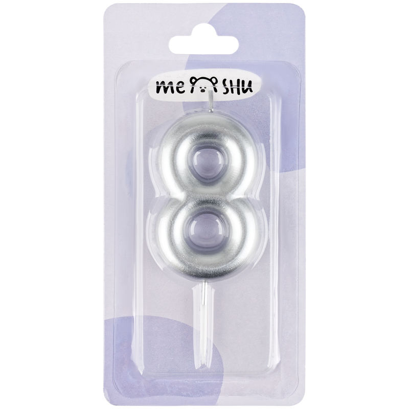 Свеча для торта с держателем MESHU "Цифра 8", 6 см, серебряная, блистер