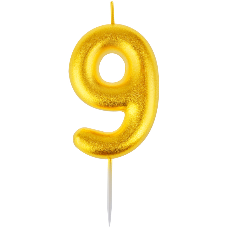 Свеча для торта с держателем MESHU "Цифра 9", 6 см, золотая, блистер