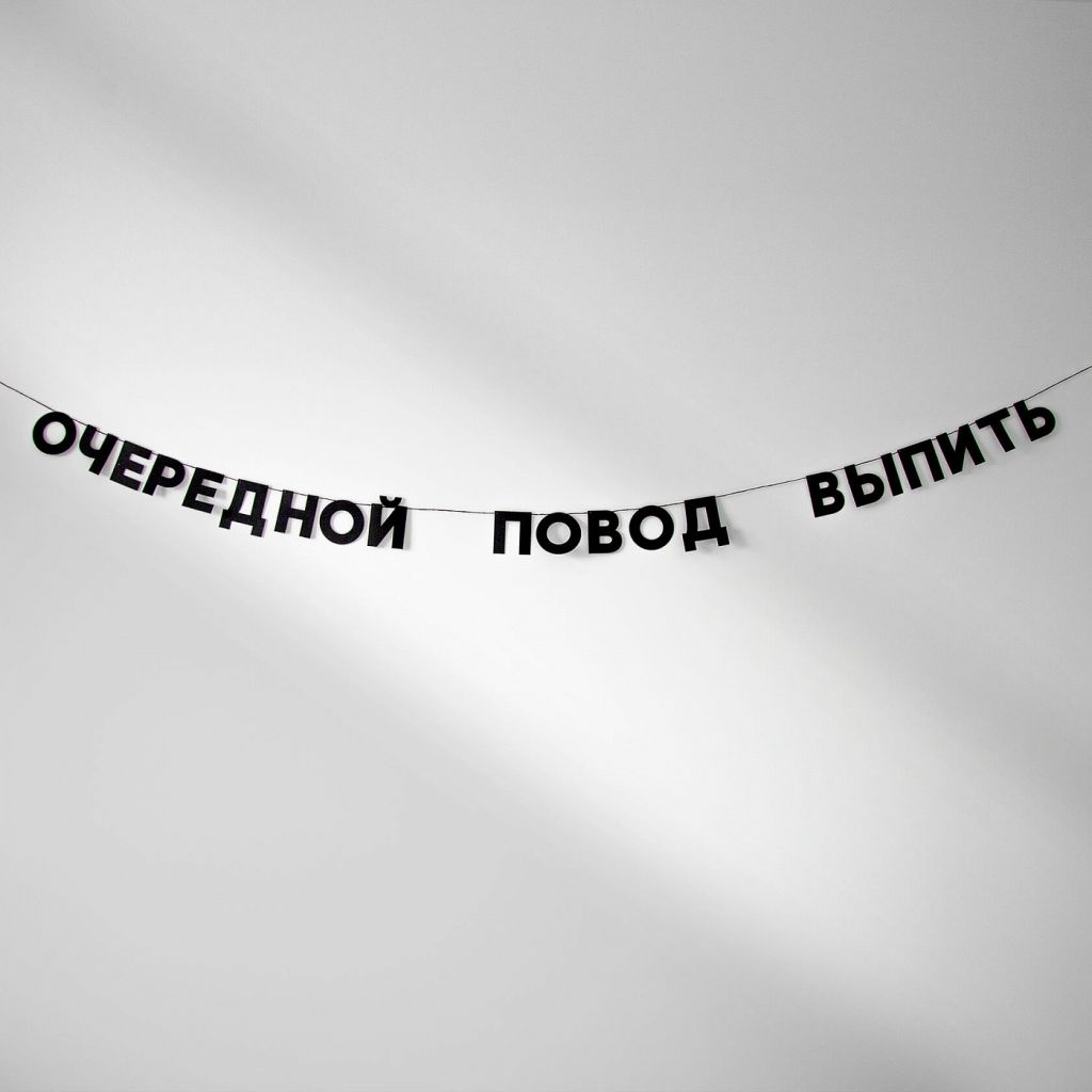 Стильные лаконичные гирлянды от Tak sebe prazdnik украсят ваш дом или мастерскую, поднимут настроение или подчеркнут акценты ваших мыслей и восприятия мира — это настоящая философия заключенная в короткой фразе ? Широкий выбор концептуальных высказываний гарантирует, что вы непременно найдёте именно ту гирлянду, которая украсит любую вечеринку, настроит на нужный лад и подарит настроение вам и вашим друзьям. Гирлянды изготовлены из плотного матового картона черного цвета, в комплект входят липучки для надежного, но эластичного крепления. Упакованы в черный квадратный подарочный конверт. Материал: картон 240 г/м? Высота букв: 8,5 см. Длина гирлянды: ? 210 см. Длина верёвки: ? 250 см. В комплекте: стикеры для крепления гирлянды 2 шт.