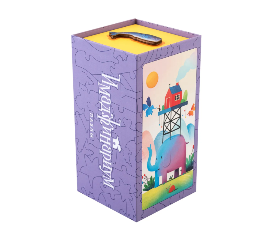 Пазл "Имаджинариум" - это и необычный способ для развития вооброжения по мотивам популярной настольной игры. Каждая деталька пазла выполнена в уникальной форме и скрывает вою историю, а вместе они складываются в яркие иллюстрации от известных художников. Начинайте собирать как обычный пазл - кусочек за кусочком,и на ваших глазах оживает красивая иллюстрация из игры "Имаджинариум" Собирать пазл довольно легко,а приятный аромат дерева добавит новую нотку удовольствия в процесс.
