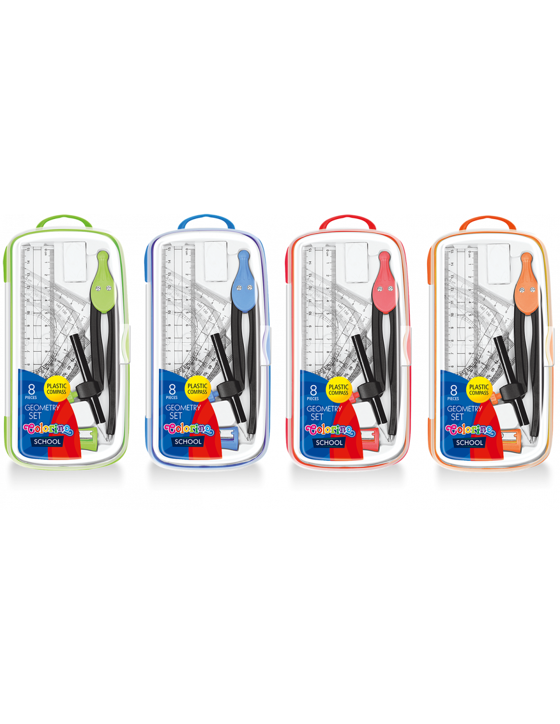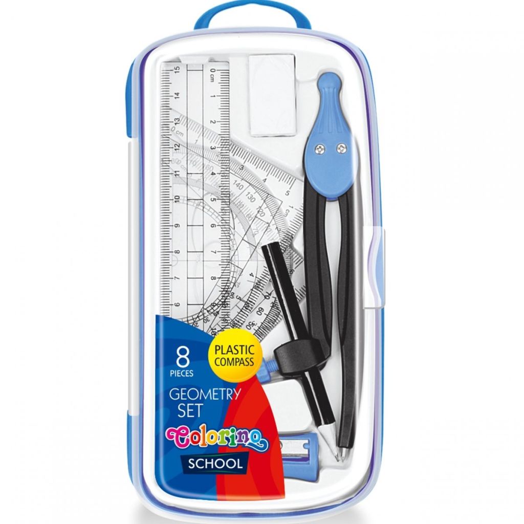 Набор для черчения от бренда Colorino отлично подойдет для занятий дома и в школе. В набор входит универсальный циркуль «козья ножка» с чернографитным карандашом, линейка, угольник, транспортир, ластик и точилка. Поставляется в компактном пластиковом футляре. Цвет товара представлен без возможности выбора цвета, он будет случайным.