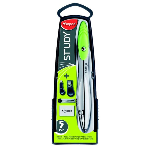 Набор чертежных инструментов Study в пластиковой коробке. Изготовлено из металла с элементами из пластика. Набор состоит: циркуль с грифелем; пенал с грифелями; точилка для грифелей; отвертка; ластик.
