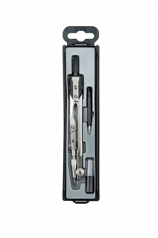 Набор чертежный, серия «Technica». В наборе 3 предмета: циркуль чертежный, длина 125 мм, нержавеющий металл; пенал с запасным грифелем, игольная вставка. Максимальный диаметр окружности 280 мм.