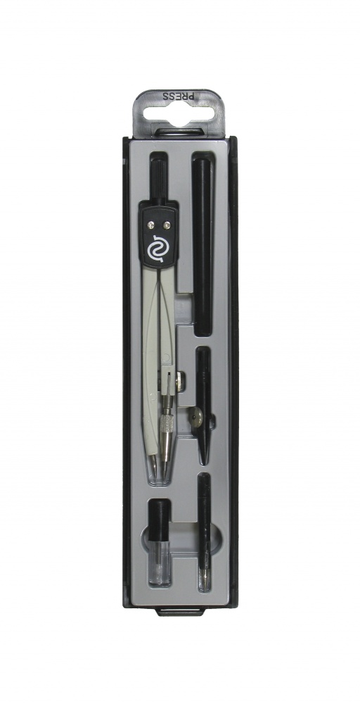 Набор чертежный, серия School. В наборе 5 предметов: циркуль чертежный, длина 125 мм, нержавеющий металл; пенал с запасным грифелем, ручка, рейсфедерная вставка, игольная вставка. Максимальный диаметр окружности 280 мм.