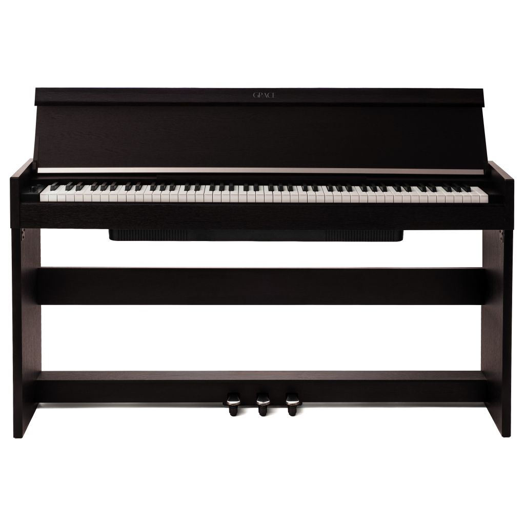 Grace СР-170 - первый инструмент с 512 МБ памяти сэмпловЦифровое пианино Grace СР-170 - это первая модель Grace, оснащённая 512 МБ встроенной памяти для звуковых сэмплов, из которых 420 МБ занимает главный тембр - легендарный акустический рояль Steinway, записанный с оригинального инструмента в студийном качестве. Каждая клавиша снабжена многослойным сэмплированием, передающим мельчайшие нюансы резонанса и послезвучия, благодаря чему звук Grace СР-170 получается максимально глубоким, насыщенным и естественным. Мощный восьмиядерный процессор обеспечивает мгновенную обработку и плавную динамику игры, а в своей ценовой категории Grace CP-170 просто не имеет аналогов на рынке.Безграничные звуковые возможностиЦифровое пианино оснащено полноразмерной клавиатурой с 88 клавишами и молоточковой механикой, которая достоверно передаёт ощущение игры на рояле. Grace CP-170 предлагает 31 демонстрационную песню, 8 высококачественных тембров, 128 ритмов с возможностью настройки темпа, функцию «игра аккордами одним пальцем» и возможность синхронизации игры с ритмами. Пользователь может настроить динамический отклик клавиш и воспользоваться встроенным метрономом для обучения и поддержания ритма. Кроме того, инструмент оснащён двумя разъёмами для наушников, что позволяет играть, не беспокоя окружающих.Множество функций в одном инструментеGrace CP-170 обладает множеством функций. Он позволяет записывать и накладывать две дорожки в одну композицию, а также транспонировать и тонко настраивать тон звучания клавиш. Функция воспроизведения MP3-файлов позволяет учиться под любимую музыку. Grace CP-170 оснащён возможностью подключения к компьютеру через USB-интерфейс. При использовании программного обеспечения на компьютере доступны дополнительные возможности, включая запись музыки, воспроизведение аккомпанемента и использование плагинов. Инструмент отличается богатством функциональности и гибкостью настроек, позволяя музыкантам выразить своё творчество и достичь высокого уровня музыкального исполнения.Изысканный дизайн по доступной ценеGrace CP-170 обладает отличными игровыми качествами, разнообразными функциями и изысканным, аутентичным дизайном. Компактная форма сочетается с современной эстетикой инструмента. Стоит упомянуть о такой приятной детали, как функция плавного опускания крышки клавиатуры. Плавное опускание исключает громкий стук при закрытии и обеспечивает защиту инструмента от повреждений при случайном ударе крышки. Этой функции нет у других цифровых пианино Grace. Неоспоримым достоинством данного пианино является его удивительно доступная цена: приобретение такой модели не нанесёт удара по бюджету семьи. массу.Доступные цвета:Grace CP-170 RW - палисандрGrace CP-170 BK - чёрныйGrace CP-170 WH - белый