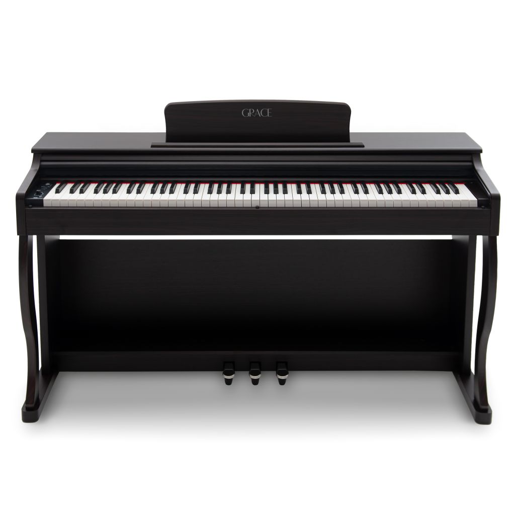 Grace CP-200 подходит для учащихся музыкальных школ и опытных музыкантов, ценящих аутентичность игры на акустическом пианиноGrace CP-200 представляет собой улучшенную версию Grace CP-100 с несколькими изменениями. Основные различия между Grace CP-200 и Grace CP-100 заключаются в звуке и технических характеристиках. Grace CP-200 имеет полифонию в 189 голосов, что позволяет играть даже самые сложные музыкальные произведения, не теряя при этом качества звучания, в то время как Grace CP-100 обладает меньшей полифонией — 81 голос. Преимущество CP-200 заключается в улучшенной производительности. Инструмент оснащен мощным 8-ядерным процессором, который обеспечивает быструю обработку звука и позволяет достичь высокой точности воспроизведения. Динамики мощностью 50 Ватт гарантируют яркое, глубокое и чистое звучание, не уступающее в качестве концертным фортепиано. Также в Grace CP-200 есть крышка для клавиатуры, которая помогает защитить инструмент от пыли, повреждений и добавляет еще больше элегантности и стиля в дизайн.Мощный звук рояля SteinwayGrace CP-200 воспроизводит богатый тембр легендарного концертного рояля Steinway. Каждая клавиша инструмента содержит пять звуковых дорожек, которые активируются в зависимости от силы нажатия, создавая звуковой отклик, схожий с игрой на настоящем рояле. Инструмент обладает 88 взвешенными клавишами и молоточковой механикой, достоверно передающими ощущение игры на рояле. Помимо этого, Grace CP-200 обладает множеством функций и возможностей для дополнительного варьирования звука и выразительности игры. В нем встроены 31 демонстрационная песня, 8 высококачественных тембров, 128 ритмов с возможностью настройки темпа, функция "игра аккордами одним пальцем", а также возможность синхронизации игры с ритмами. Пользователю доступны настройка динамического отклика при нажатии клавиш, встроенный метроном для обучения сохранению ритма, а также специальные встроенные эффекты Trill, Suspension и DSP.Множество функций в одном инструментеGrace CP-200 имеет множество функций. Он позволяет записывать и наслаивать две дорожки в одну композицию, а также транспонировать и тонко настраивать тон звучания клавиш. Функция воспроизведения MP3 файлов позволяет учиться под любимую музыку. Инструмент также оборудован двумя разъёмами для наушников, что позволяет играть, не беспокоя окружающих. Grace CP-200 имеет возможность подключения к компьютеру через USB-интерфейс. При использовании программного обеспечения на компьютере вы получаете множество дополнительных возможностей, включая запись музыки, воспроизведение аккомпанемента и использование плагинов. Инструмент отличается богатством функциональности и гибкостью настроек, позволяя музыкантам выразить своё творчество и достичь высокого уровня музыкального исполнения.Изысканный дизайн по доступной ценеGrace CP-200 обладает отличными игровыми качествами, разнообразными функциями и изысканным, аутентичным дизайном. Компактная форма сочетается с современной эстетикой инструмента. Неоспоримым достоинством данного пианино является его удивительно доступная цена, приобретение такой модели не нанесет удар по бюджету семьи.В комплект пианино входит стойка, набор педалей, музыкальное амбразуры, инструкция на русском языке и адаптер питания. Инструмент имеет превосходный внешний вид, компактные размеры и небольшой вес.Доступные цвета:G