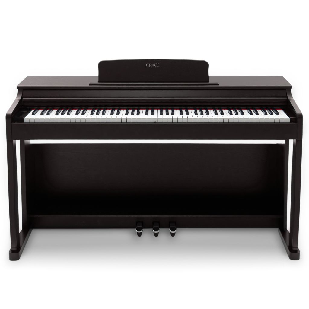 Grace CP-250- высококачественное цифровое пианино с расширенными возможностямиGrace CP-250 представляет собой улучшенную версию Grace CP-200 и обладает рядом значительных преимуществ. Он предлагает более расширенный функционал, включая 238 тембров, 200 ритмов и 100 демонстрационных композиций. Кроме того, инструмент оснащён дисплеем и панелью управления с интуитивно понятной навигацией. Grace CP-250-цифровое пианино высокого класса при относительно небольшом бюджете. Благодаря мощному 8-ядерному процессору с полифонией в 189 голосов и ТОПовой клавиатуре, пианино "осилит" произведения любого уровня сложности без ограничений. Мощные динамики мощностью 50 Ватт обеспечивают качественный звук с хорошо проработанными нижними и верхними частотами.Инновационные возможности Grace CP-250 оснащен 88 полноразмерными клавишами с молоточковым механизмом. Французский топовый источник звука DREAM был принят за основу, что обеспечивает более реалистичное звучание. Инструмент также оборудован встроенным метрономом, который гарантирует комфорт и точность при ритмической игре. Кроме того, Grace CP-250 поддерживает запись и воспроизведение аудиодорожек, а также наложение тембров.Множество функций в одном инструментеGrace CP-250 оснащен функцией автоаккомпанемента и возможностью разделения клавиатуры, что позволяет удобно практиковать игру в четыре руки. Эти возможности значительно упрощают процесс обучения, делая его более комфортным и эффективным. Наличие двух разъемов для наушников и USB-порта увеличивает удобство использования Grace CP-250, превращая его в универсальный и многофункциональный инструмент.Элегантный дизайн и доступная ценаВ комплект пианино входит стойка, блок из педалей, пюпитр, наушники, инструкция на русском и адаптер питания. Инструмент имеет превосходный внешний вид, компактные размеры и небольшой вес.Grace CP-250 - это надежный и высококачественный инструмент, идеально подходящий для обучения и развития музыкальных навыков у учащихся и начинающих музыкантов.Доступные цвета:Grace CP-250 ВК - чёрныйGrace CP-250 WH - белыйGrace CP-250 RW - палисандр