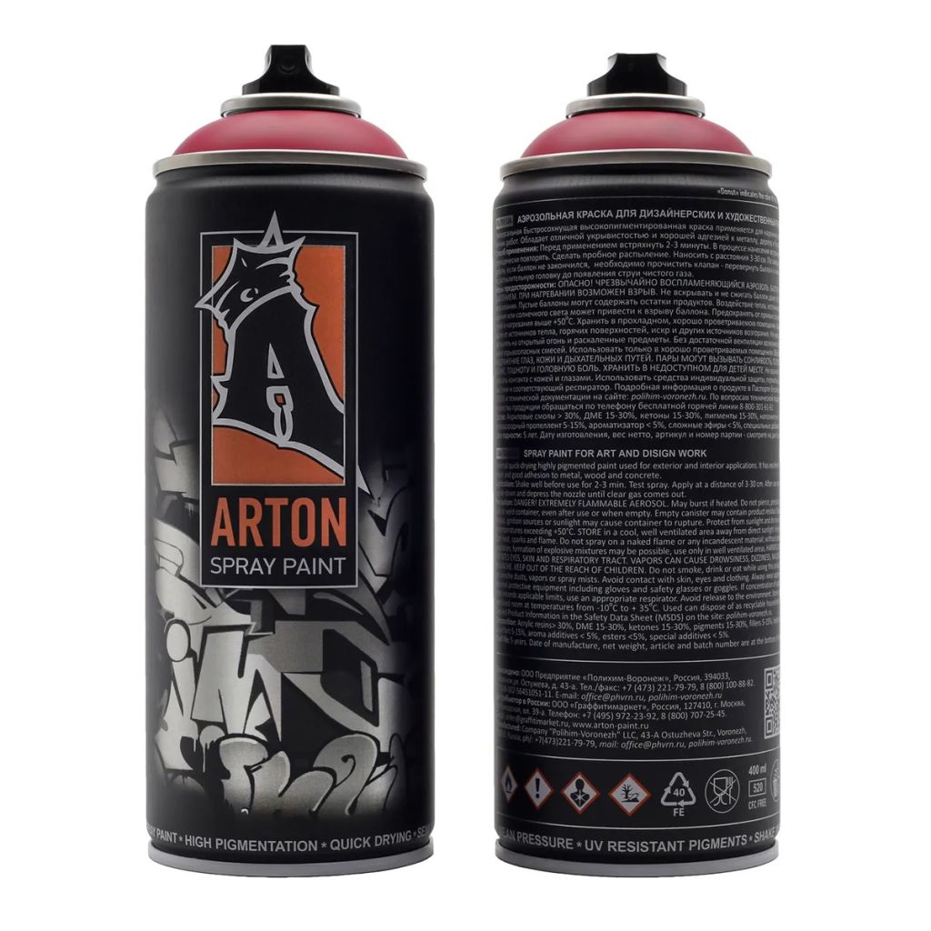 Аэрозольная краска Arton на сегодняшний день является самой одной из самых популярных красок в России как среди начинающих художников, так и среди профессионалов. Выпускается с оптимальным давлением, которое позволит Вам равномерно и плотно покрывать любые поверхности. В основе краски Arton – качественный пигмент, который хорошо ложится, не растекается и мало подвержен выгоранию. Arton несколько лет является главным выбором у организаторов фестивалей и конкурсов при выборе аэрозольной краски. С 2009 года краска входит в ар ичной продукции конкурентов) - Абсолютно матовая - Высокая кроющая способность ,перекрывает хром с первого раза - Краска не растрескивается - Высокая пигментация - Быстрое время высыхания - Бесперебойная работа - Высокая скорость нанесения - Специальный состав краски исключающий подтеки - Нанесение на все виды поверхностей - Низкое, среднее давление в зависимости от кэпов - Толщина линии зависит от силы нажатия кэпа - Мягкая пружина клапана.