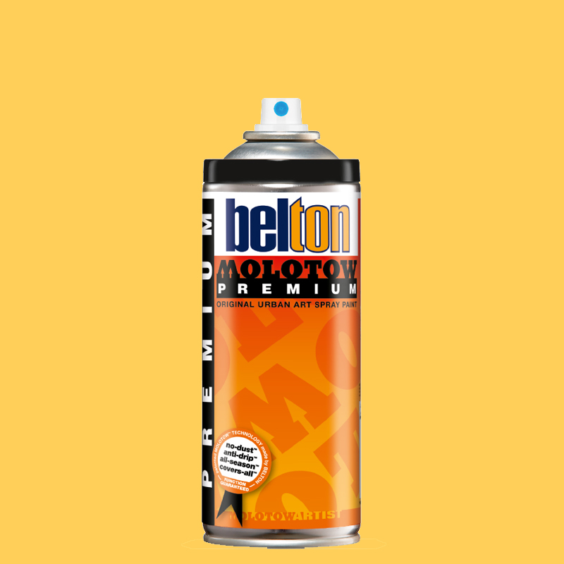 Аэрозольная краска Molotow Premium впечатляет не только высокой укрывистостью и очень хорошей стойкостью к ультрафиолетовому излучению, но и быстрым высыханием. Таким образом ваши произведения искусства сохраняются как можно дольше, а время сушки для дальнейшей обработки сокращается. Оснащенная испытанной технологией краска Molotow Premium "belton" является эталоном в области граффити, и благодаря большому количеству цветов диапазон палитры превосходит все ожидания. Помимо ярких однотонных цветов, есть еще неоновые тона и прозрачные лаки. В краске на нитроалкидной основе используются пигменты высочайшего качества измельченные 4 раза. Простое распознавание цвета обеспечивается системой Double Function Cap, крышка баллона окрашена реальным цветом. Выпускается с 1999 года.