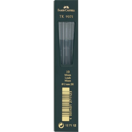 Стержни для цанговых карандашей Faber-Castell (диаметр 2 мм) в пластиковом пенале-подставке. Внутри пенала 5 специальных отделений в которых лежат по 2 стержня, поэтому стержни не катаются и не бьются друг о друга. На каждом грифеле есть маркировка мягкости. Грифели Faber-Castell подходят для письма, рисования, скетчинга и графических работ. Грифели устойчивы к сколам, поломкам, мягко скользят по бумаге, дают насыщенный оттенок, хорошо стираются с бумаги любым ластиком.