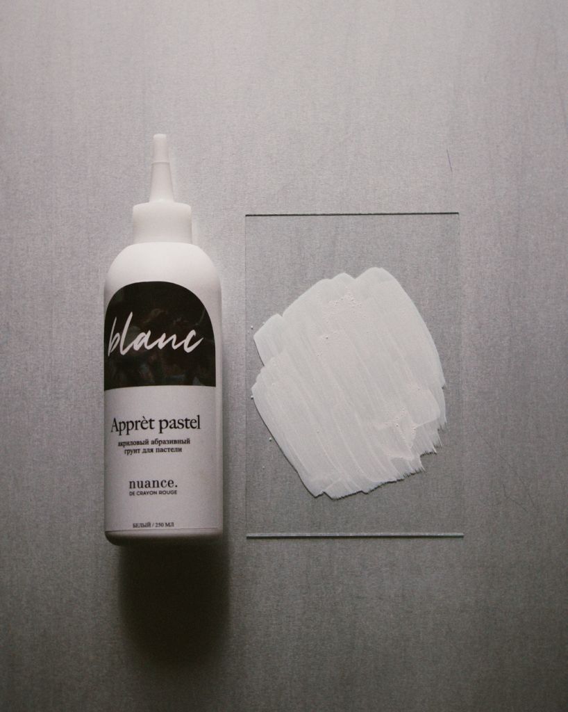 Подготовьте к работе пастелью любую поверхность: бумагу, картон, крафт, дерево и даже стекло. Грунт создаёт на поверхности прочный, абразивный акриловый слой для нанесения сухих графических материалов. Белый грунт nuance. отличается более густой консистенцией (чем чёрный и прозрачный) для максимальной кроящей способности. При необходимости может быть разбавлен водой в соотношении 10:1-10:2, где 10 — это грунт. Регулируйте консистенцию, не теряя абразивных свойств. Применение: нанесите грунт на подготавливаемую поверхность. Обычно, двух слоёв бывает достаточно. Перед работой дайте поверхности просохнуть. Состав: акрилатная дисперсия, поливинилацетат, карбоксиметилцеллюлоза, функциональные добавки. Обязательно встряхните перед применением в течение 30 секунд. Выпускается в формате флакона с носиком-дозатором, объёмом 250 мл. в оттенках «?Белый», «?Чёрный», «?Прозрачный» и «?Экрю».