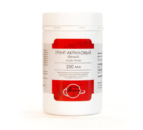 Акриловые грунты ТАИР предназначены для грунтования всех твёрдых и текстильных подложек перед работой масляными, акриловыми, темперными и гуашевыми красками. Подходят для подготовки поверхности в различных декоративных техниках, в том числе декупажа и росписи. Широко используются для грунтования хлопковых и льняных холстов. Акриловый грунт хорошо перекрывает поверхность, придаёт ей однородную плотность и гладкость. Хорошая адгезия грунта позволяет применять его на разных видах поверхностей. Консистенция: густая, пастообразная. Укрывистость: высокая. Состав: акриловая дисперсия, пигмент, наполнитель, загуститель, консерванты, вода.