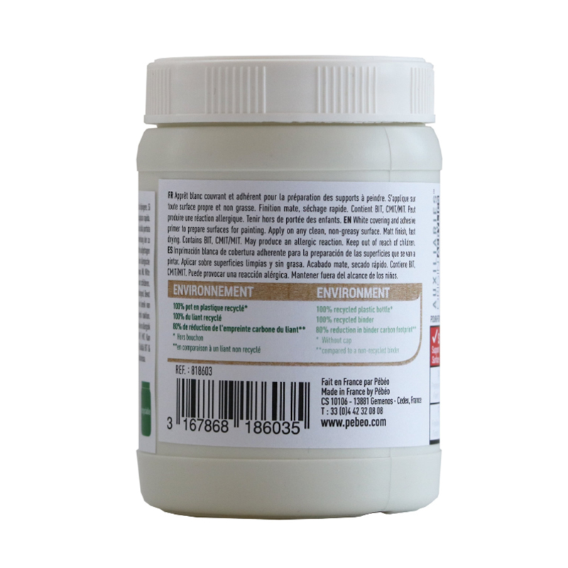 Белый покрывной грунт, с хорошей адгезией для подготовки поверхности для живописи. Наносится на любую чистую, обезжиренную поверхность. Матовый финиш, быстрое время высыхания. На основе воды. Можно разбавить с водой при необходимости. Вспомогательные средства Origin универсальны и могут использоваться как с нашей линейкой красок Origin, так и с любой другой акриловой краской. Можно разбавить водой, или с помощью универсального растворителя Pebeo, если продукт высох.