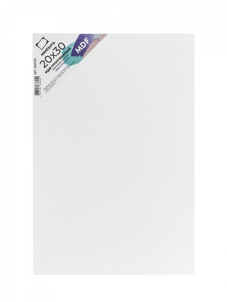 Грунтованный МДФ – готовая основа для масляной, акриловой живописи и рисования гуашью. Грунт, который выравнивает поверхность, обеспечивает равномерное нанесение краски. В результате лист становится немного шероховатым. Работать на такой поверхности одно удовольствие: краски легко наносятся, не текут, не осыпаются после высыхания, надолго сохраняют яркость. Толщина основы 3 мм.