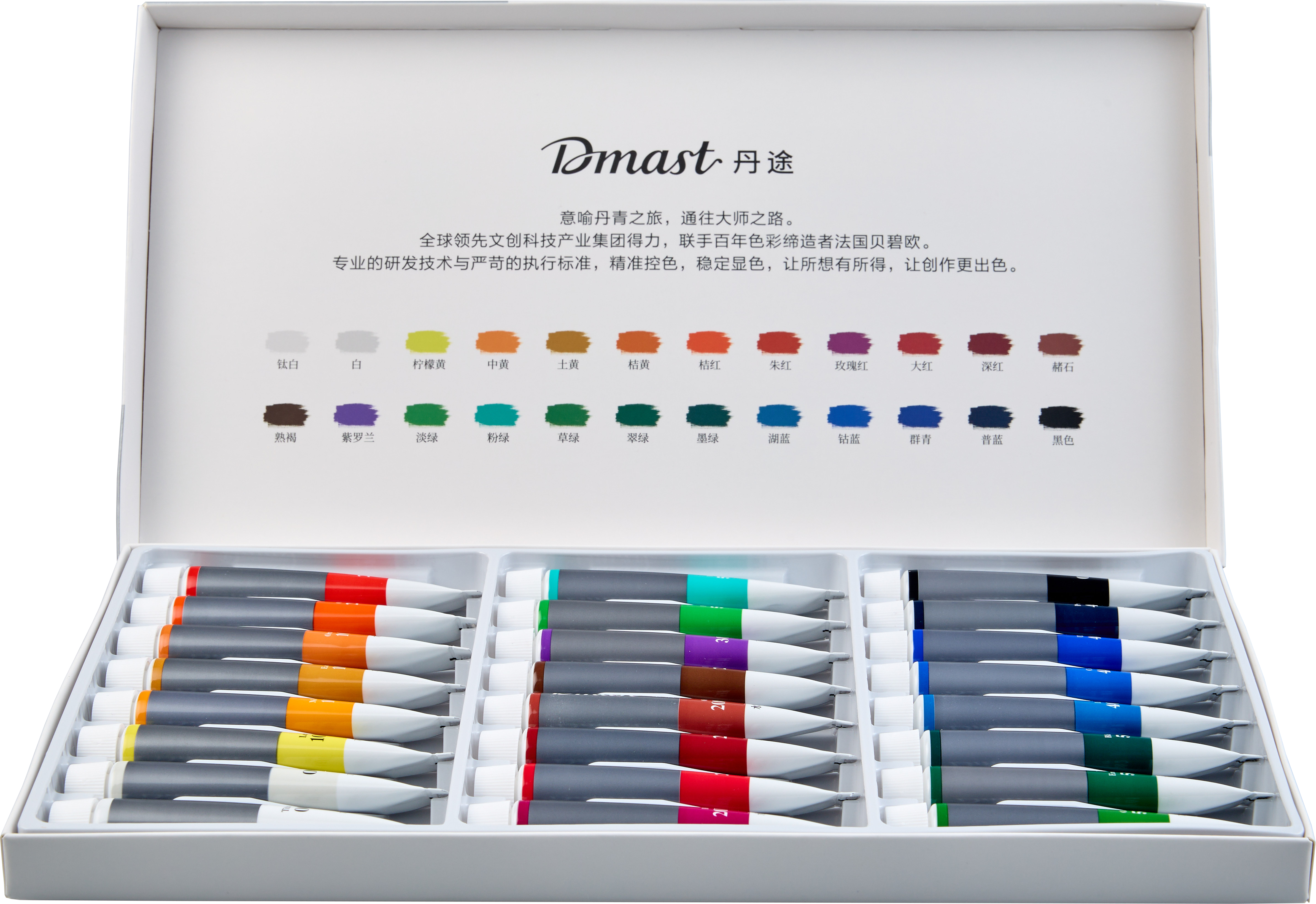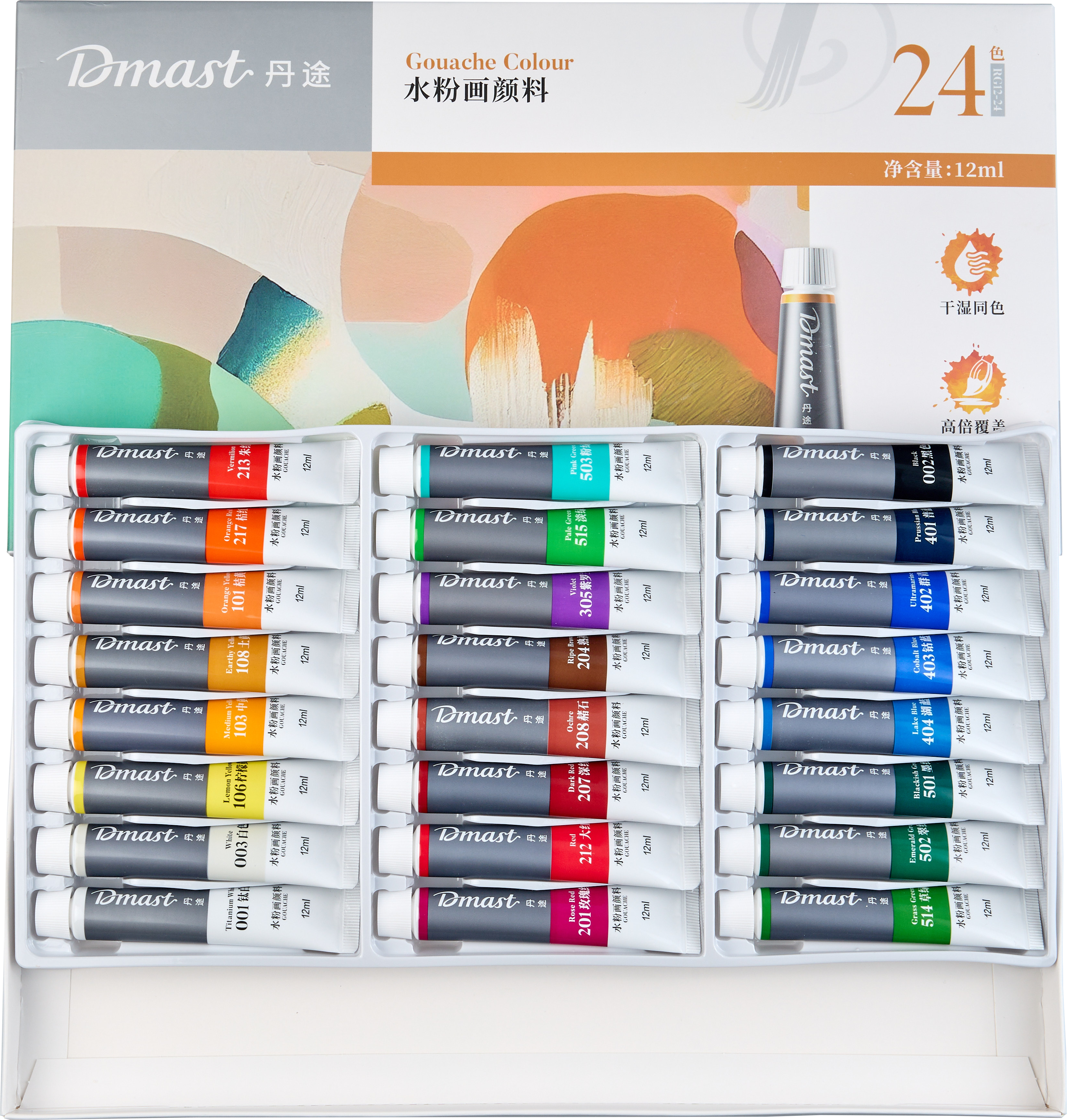 Гуашь Dmast — художественные краски для всех уровней мастерства и видов творчества. Обладает очень высокой укрывистостью, не меняет цвет после высыхания и разбавления водой, имеет хорошую светостойкость. Гарантирует идеальную цветопередачу, благодаря высокой концентрации пигментов. После высыхания красочный слой имеет матовый финиш. Гуашь Dmast при работе с водой позволяет имитировать акварельные эффекты. Произведена из натурального высококачественного сырья: пигменты равномерного тонкого помола и связующее. Продукция бренда Dmast создана благодаря сочетанию высокого качества выверенных технологий бренда Pebeо и инновационным производственным процессам компании Deli — крупнейшего производителя канцелярских товаров в Азии.