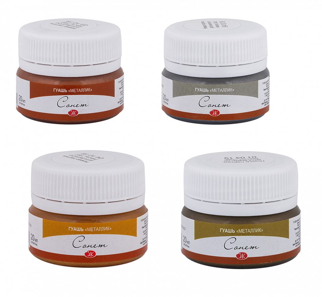 О серии: гуашь «Сонет» широко используется для художественных и дизайнерских работ. Отлично подходит для детского творчества. В отличие от используемых при изготовлении профессиональной гуаши пигментов и гуммиарабика как связующего, в рецептуре гуаши «Сонет» использованы пигментные пасты и синтетическое связующее. Гуашь «Сонет» хорошо ложится на бумагу и картон. При необходимости разбавляется водой и легко размывается. После высыхания приобретает бархатистый матовый оттенок. Применение: для художественных и оформительских работ, часто используется для детского творчества. Производство: гуашь «Сонет» производится заводом художественных красок Невская палитра, расположенным в городе Санкт-Петербурге. Завод уже более 80 лет выпускает продукцию для профессиональных художников и любителей творчества.
