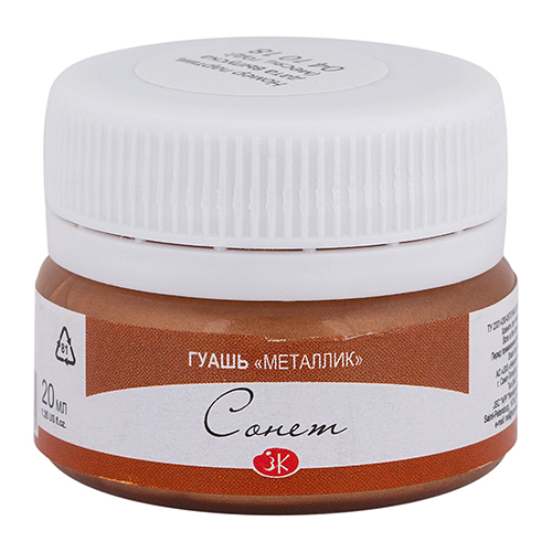 О серии: гуашь «Сонет» широко используется для художественных и дизайнерских работ. Отлично подходит для детского творчества. В отличие от используемых при изготовлении профессиональной гуаши пигментов и гуммиарабика как связующего, в рецептуре гуаши «Сонет» использованы пигментные пасты и синтетическое связующее. Гуашь «Сонет» хорошо ложится на бумагу и картон. При необходимости разбавляется водой и легко размывается. После высыхания приобретает бархатистый матовый оттенок. Применение: для художественных и оформительских работ, часто используется для детского творчества. Производство: гуашь «Сонет» производится заводом художественных красок Невская палитра, расположенным в городе Санкт-Петербурге. Завод уже более 80 лет выпускает продукцию для профессиональных художников и любителей творчества.