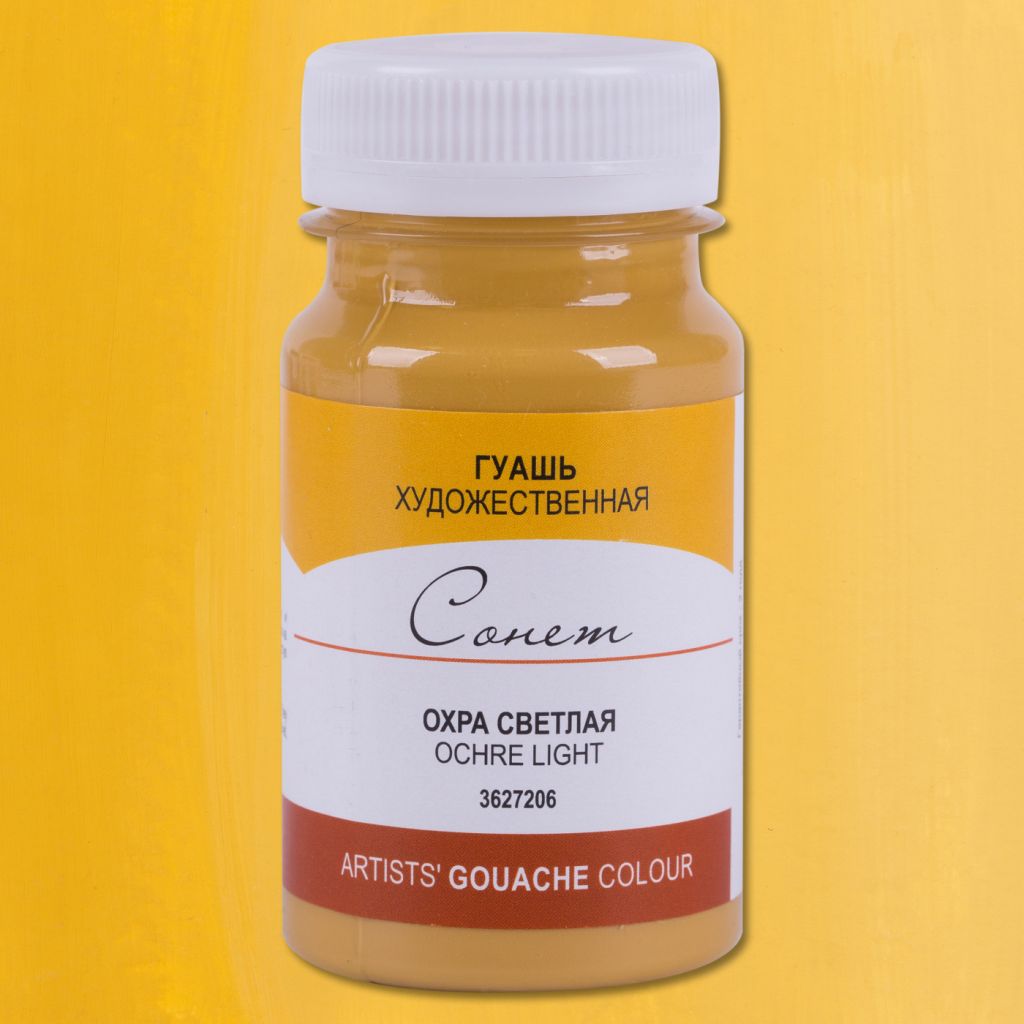 О серии: гуашь «Сонет» широко используется для художественных и дизайнерских работ. Отлично подходит для детского творчества. В отличие от используемых при изготовлении профессиональной гуаши пигментов и гуммиарабика как связующего, в рецептуре гуаши «Сонет» использованы пигментные пасты и синтетическое связующее. Гуашь «Сонет» хорошо ложится на бумагу и картон. При необходимости разбавляется водой и легко размывается. После высыхания приобретает бархатистый матовый оттенок. Применение: для художественных и оформительских работ, часто используется для детского творчества. Производство: гуашь «Сонет» производится заводом художественных красок Невская палитра, расположенным в городе Санкт-Петербурге. Завод уже более 80 лет выпускает продукцию для профессиональных художников и любителей творчества.