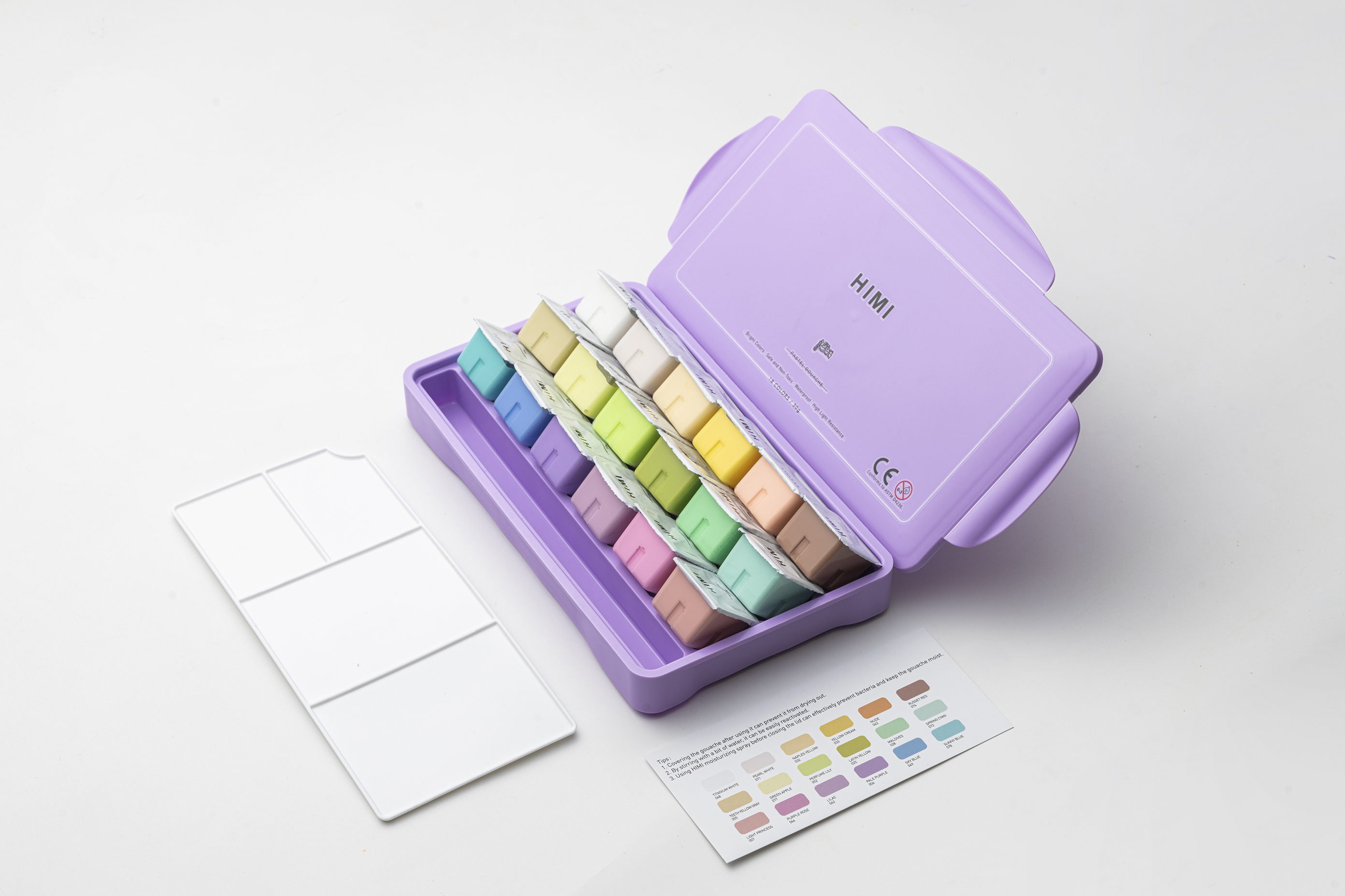 Гуашь HIMI представлена в пластиковых кюветах, объёмом 30 мл. На каждой кювете указан цвет и дата изготовления. Удобный пенал позволит быстро подготовиться к работе – достаточно снять герметичную крышку пенала и все цвета готовы к работе. Гуашь предназначена для детского творчества, для выполнения художественных, декоративных и оформительских работ, отлично подойдет для художественных школ, для начинающих и профессиональных художников. В наборе 18 цветов пастельных оттенков.
