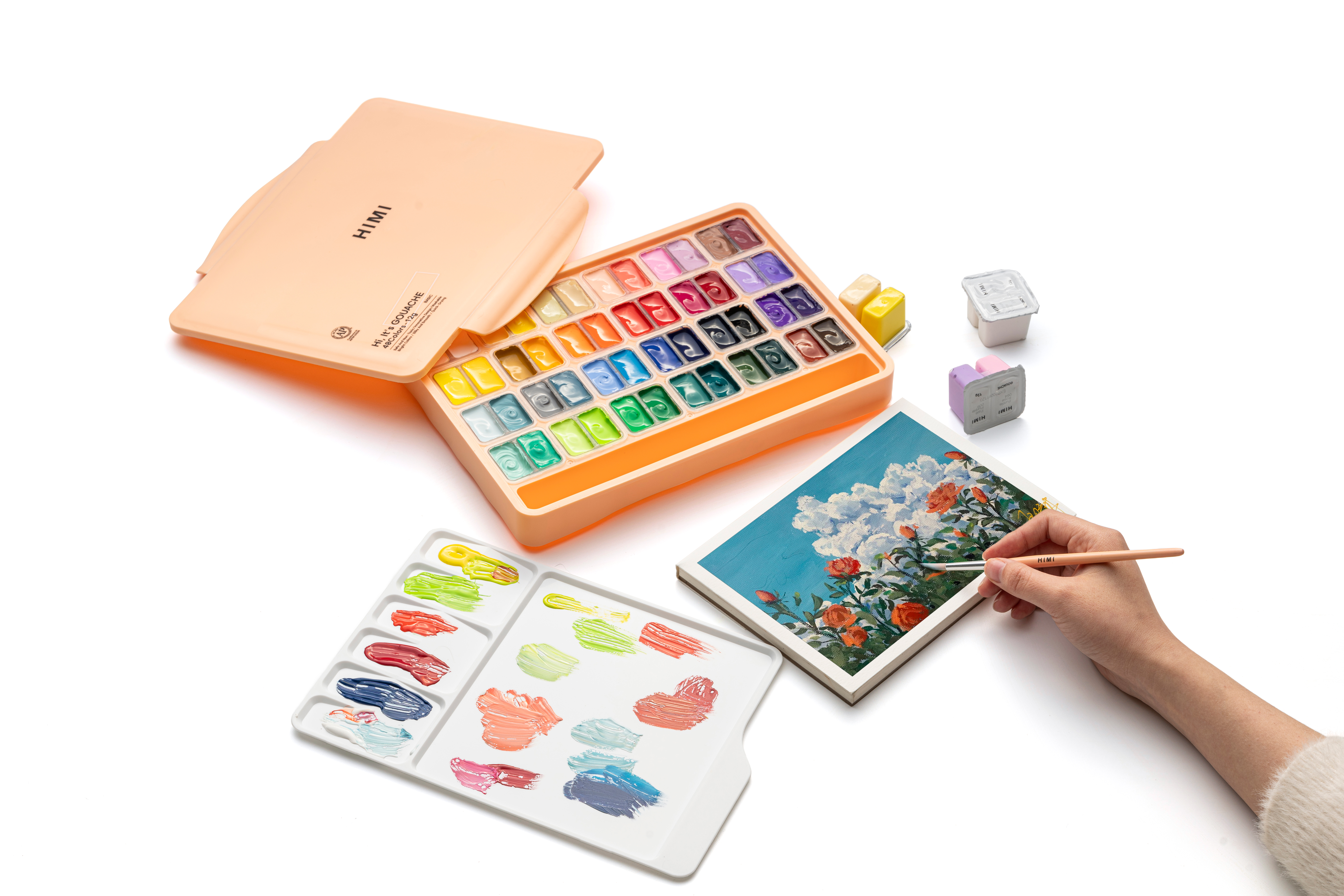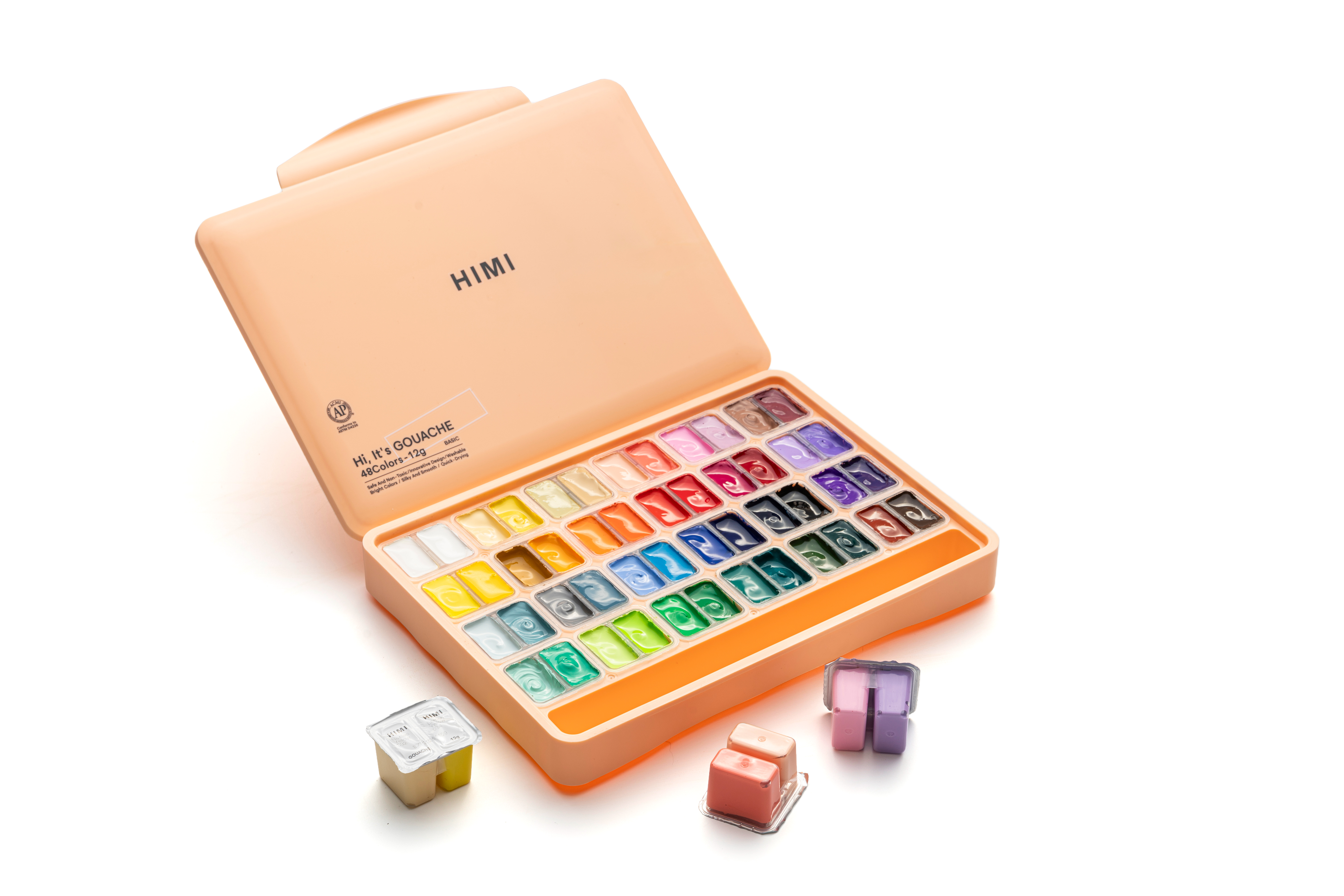 О серии: гуашевые краски бренда Himi отлично подойдут как начинающим художникам, так и профессионалам. Краски изготовлены на основе натуральных компонентов с использование высококачественных пигментов, благодаря чему обладают яркими насыщенными цветами и хорошей укрывистостью. Краски расфасованы в небольшие ёмкости по 12 гр., внешне напоминающие желе. Наборы упакованы в удобные пластиковые пеналы со съёмной палитрой. Применение: для художественных работ, детского творчества и хобби. Производство: производится китайской компанией MIYA в провинции Шаньдун. Компания MIYA была основана в 2011 году, выросла и расширилась как ведущий бренд в индустрии канцелярских товаров и художественных промыслов в Китае, посвятив себя созданию товаров для творчества. Вся продукция бренда производится по общемировым стандартам качества, не токсична и безопасна в применении.