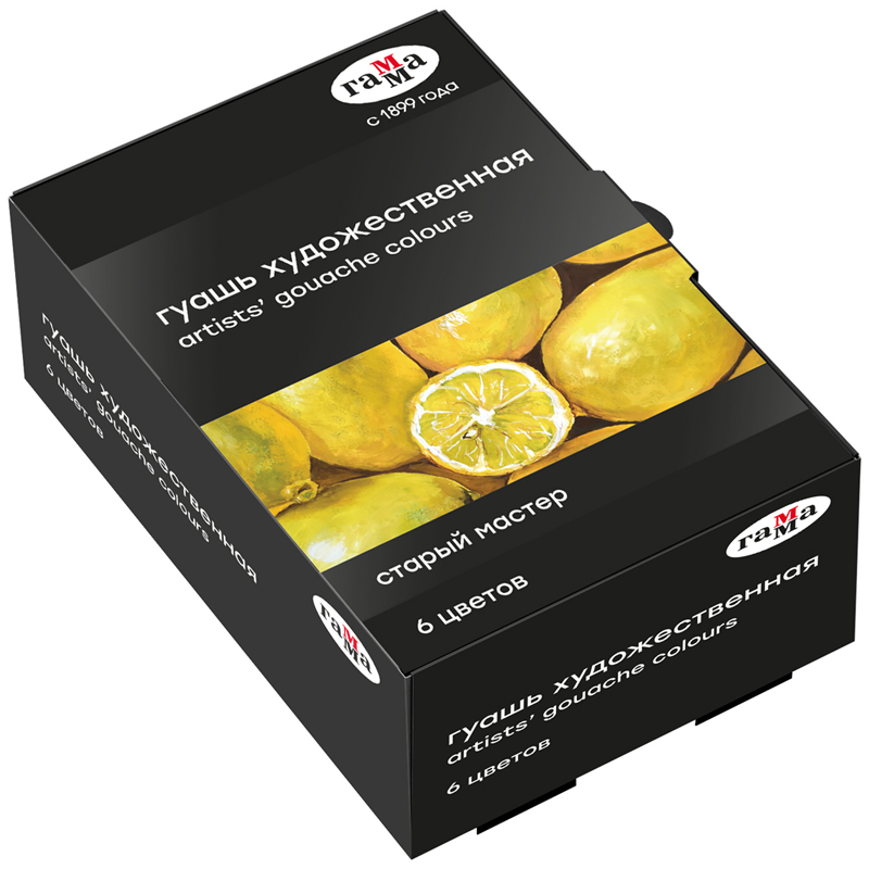 Гуашь художественная «Старый Мастер» - это профессиональные тонкотертые водорастворимые краски. Гуашь имеет уникальную рецептуру, разработанную в собственной исследовательской лаборатории завода совместно с художниками. Краска легко наносится на поверхность, благодаря специальным добавкам сохраняет яркость цвета после высыхания, создает плотный бархатный слой. Краска изготовлена из традиционных художественных пигментов, в том числе пигментов кадмиево-кобальтовой группы. В наборе оптимальная палитра цветов, подобранных профессиональными художниками. Состав набора: белила титановые (P.W.6), зеленая темная (P.G.8, P.Y.35), кадмий желтый (P.Y.35), лазурь железная (P.B.27, P.B.15:3,P.V.2), красная (P.R.254, P.Y.1), черная (P.Bk.7).