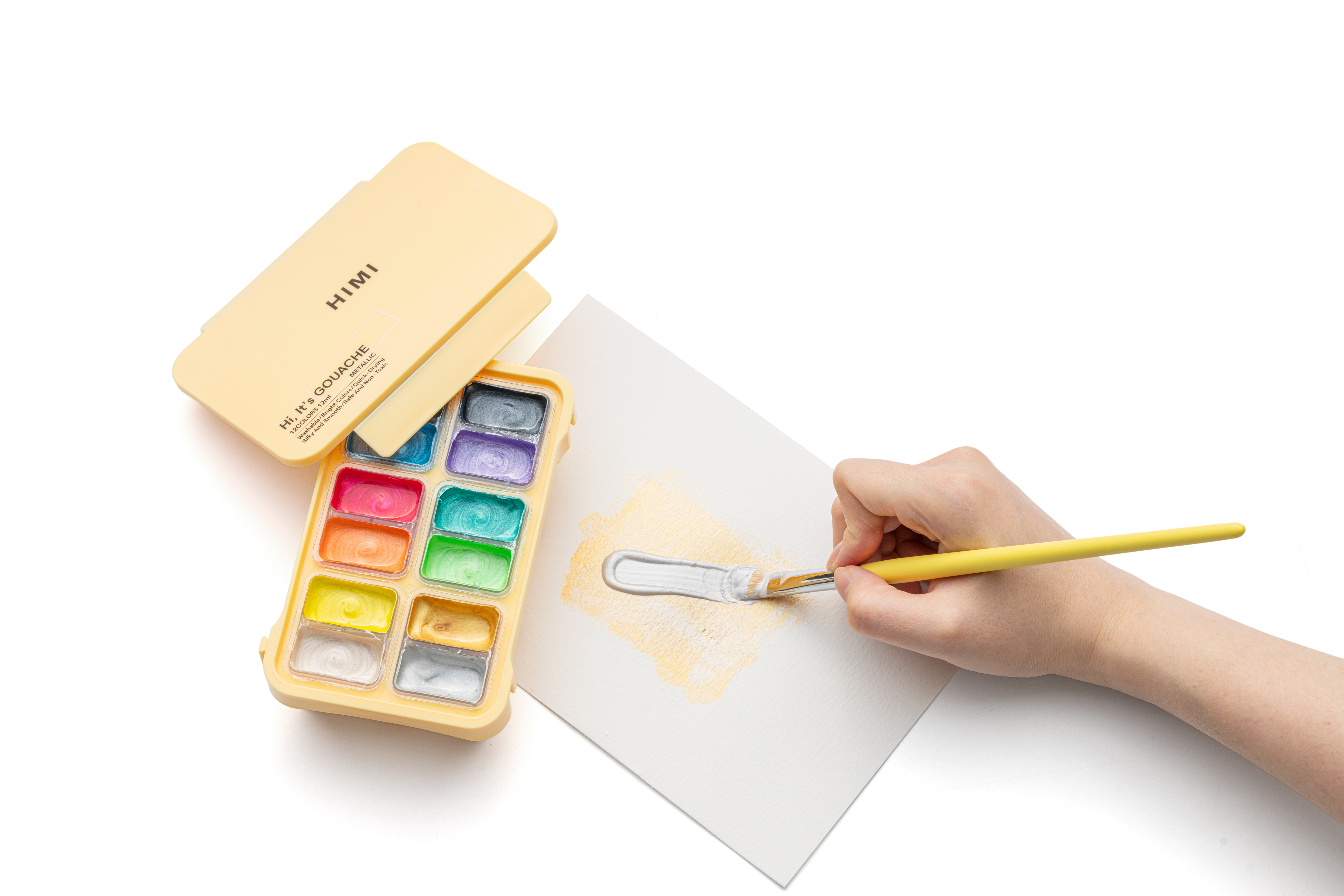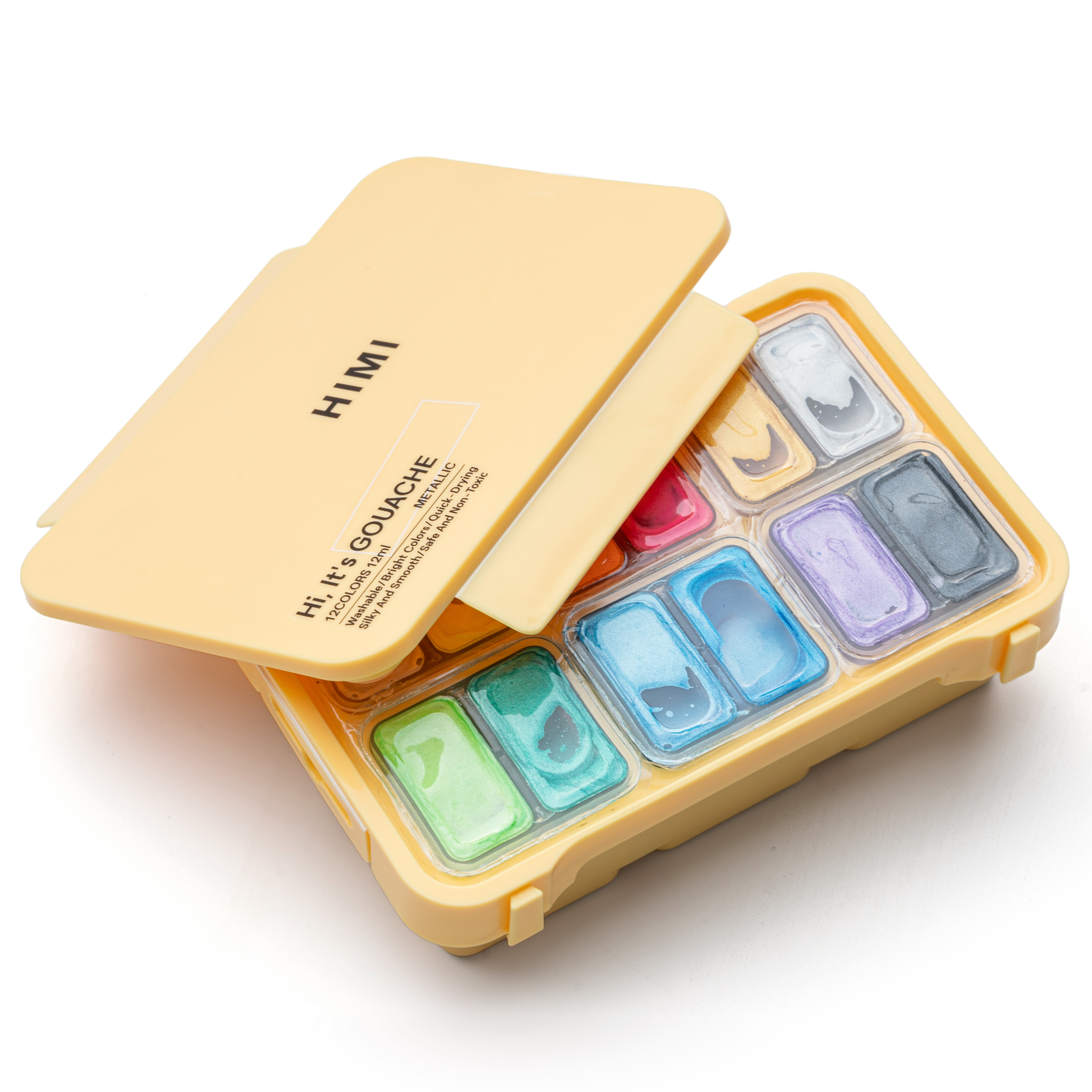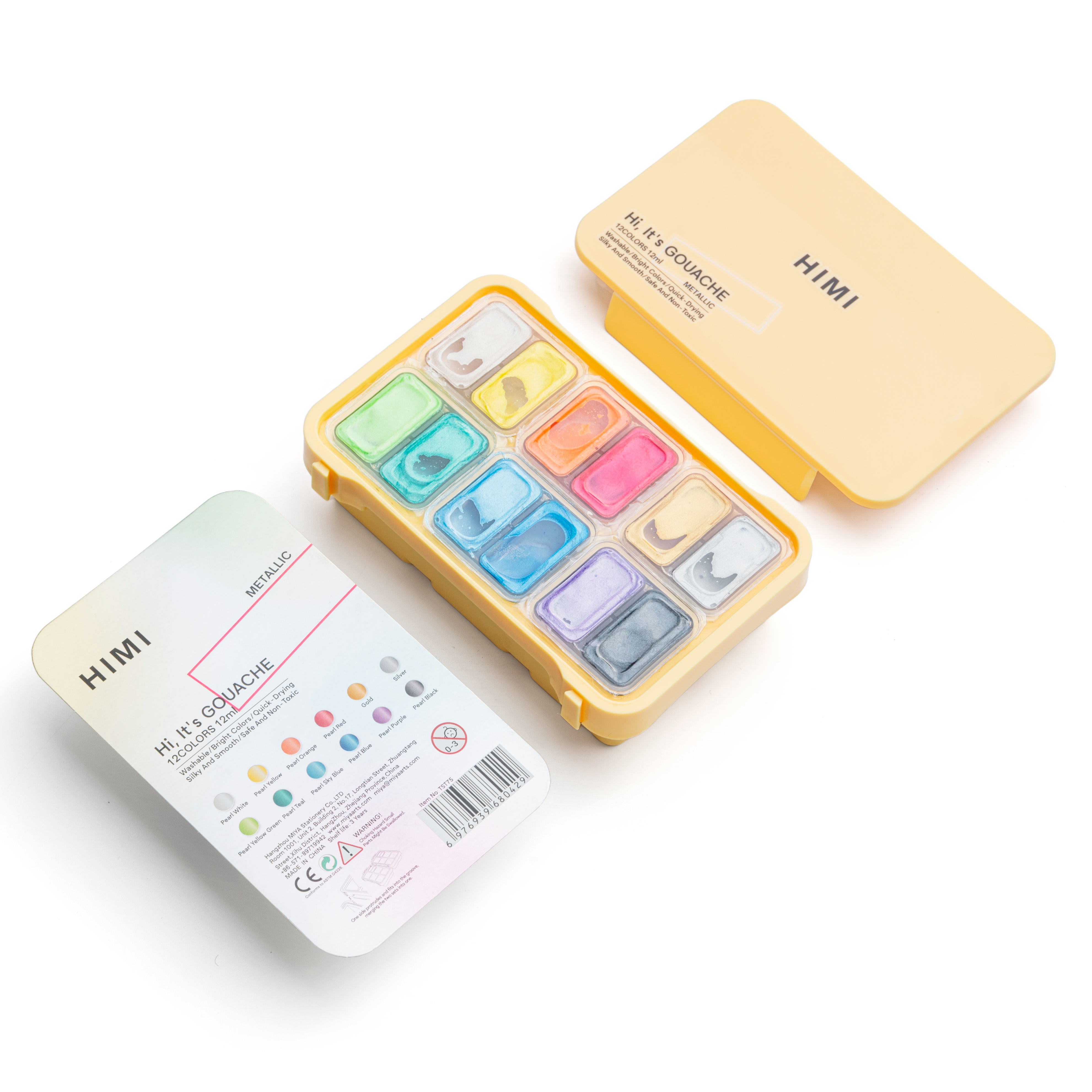 О серии: гуашевые краски бренда Himi отлично подойдут как начинающим художникам, так и профессионалам. Краски изготовлены на основе натуральных компонентов с использование высококачественных пигментов, благодаря чему обладают яркими насыщенными цветами и хорошей укрывистостью. В наборе 12 цветов гуаши оттенков металлик, краски расфасованы в небольшие ёмкости по 12 гр., внешне напоминающие желе. Наборы упакованы в удобные пластиковые пеналы. Применение: для художественных работ, детского творчества и хобби. Производство: производится китайской компанией MIYA в провинции Шаньдун. Компания MIYA была основана в 2011 году, выросла и расширилась как ведущий бренд в индустрии канцелярских товаров и художественных промыслов в Китае, посвятив себя созданию товаров для творчества. Вся продукция бренда производится по общемировым стандартам качества, не токсична и безопасна в применении.