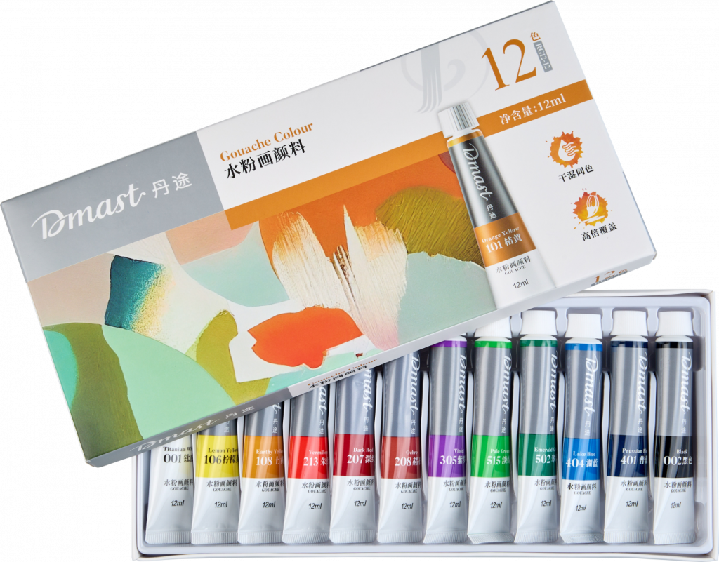 Гуашь Dmast — художественные краски для всех уровней мастерства и видов творчества. Обладает очень высокой укрывистостью, не меняет цвет после высыхания и разбавления водой, имеет хорошую светостойкость. Гарантирует идеальную цветопередачу, благодаря высокой концентрации пигментов. После высыхания красочный слой имеет матовый финиш. Гуашь Dmast при работе с водой позволяет имитировать акварельные эффекты. Произведена из натурального высококачественного сырья: пигменты равномерного тонкого помола и связующее. Цвета в наборе: Белила титановые, Желтый лимонный, Желтый земельный, Вермиллион, Красный темный, Охра, Фиолетовый, Зеленый бледный, Зеленый изумрудный, Синее озеро, Лазурь берлинская, Черный. Продукция бренда Dmast создана благодаря сочетанию высокого качества выверенных технологий бренда Pebeо и инновационным производственным процессам компании Deli — крупнейшего производителя канцелярских товаров в Азии.