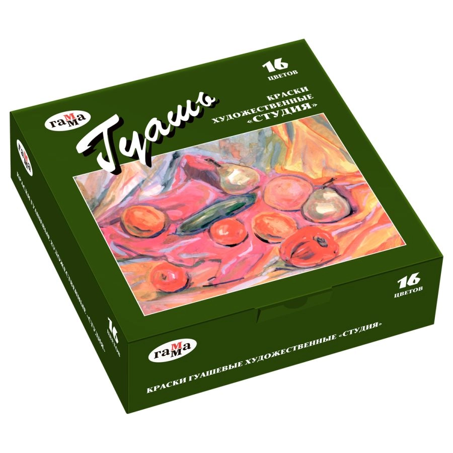Набор гуаши Гамма "Студия", 16 цветов, 40 мл, картон. упаковка