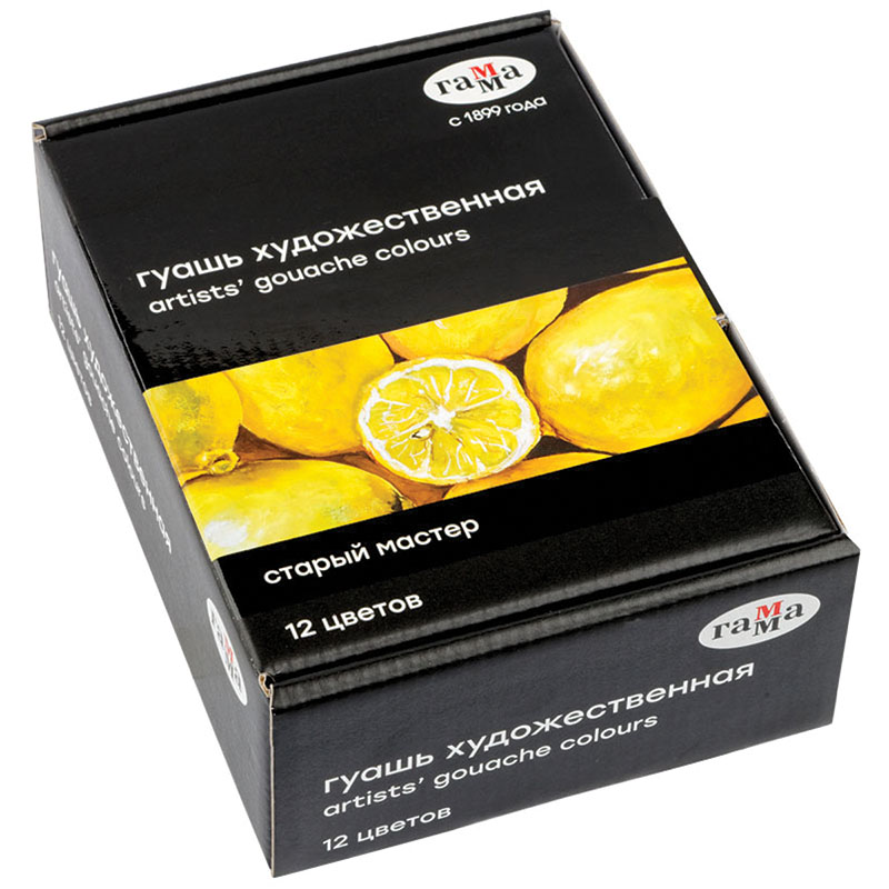 Гуашь художественная «Старый Мастер» - это профессиональные тонкотертые водорастворимые краски. Гуашь имеет уникальную рецептуру, разработанную в собственной исследовательской лаборатории завода совместно с художниками. Краска легко наносится на поверхность, благодаря специальным добавкам сохраняет яркость цвета после высыхания, создает плотный бархатный слой. Краска изготовлена из традиционных художественных пигментов, в том числе пигментов кадмиево-кобальтовой группы. В наборе оптимальная палитра цветов, подобранных профессиональными художниками. Состав: белила титановые (P.W.6), краплак красный (P.R.264), фиолетовая (P.V.3,P.W.4), кадмий лимонный(P.Y.35), зеленая темная (P.G.8, P.Y.3), сиреневая (P.R.81, P.V.2, P.W.4), сиена жженая (P.Y.42), охра золотистая (P.Y.42, P.W.4), ультрамарин (P.G.8, P.y.3), марс коричневый темный (P.Bk.7), красная (P.R.254, P.Y.1), лазурь железная (P.B.27, P.B.15:3, P.V.2), черная (P.Bk.7).
