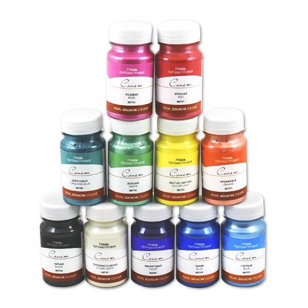 Гуашь «Сонет» производится заводом художественных красок Невская палитра, расположенным в городе Санкт-Петербурге. Завод уже более 80 лет выпускает продукцию для профессиональных художников и любителей творчества. Далеко не каждый производитель может похвастаться наличием перламутровых или флуоресцентных цветов. Завод Невская палитра дополнил красоту и практичность гуашевой краски различными эффектами и создал дополнительно к серии «Сонет» перламутровую гуашь, флуоресцентную гуашь и гуашь цвета «металлик». В палитре представлено 7 цветов «металлики», 8 флуоресцентных цветов и 11 перламутровых цветов. Гуашь «Сонет» с различными эффектами выпускается поштучно в баночках по 100 миллилитров.