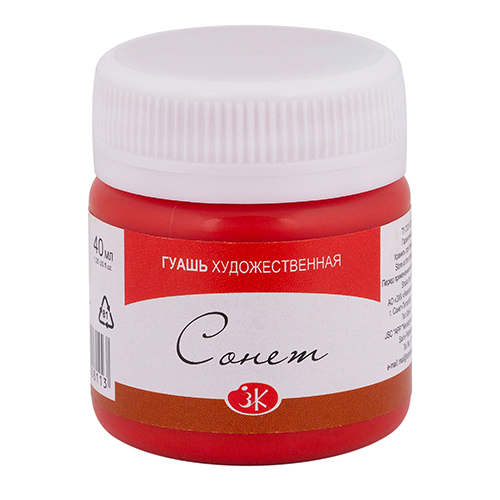 О серии: гуашь «Сонет» широко используется для художественных и дизайнерских работ. Отлично подходит для детского творчества. В отличие от используемых при изготовлении профессиональной гуаши пигментов и гуммиарабика как связующего, в рецептуре гуаши «Сонет» использованы пигментные пасты и синтетическое связующее. Гуашь «Сонет» хорошо ложится на бумагу и картон. При необходимости разбавляется водой и легко размывается. После высыхания приобретает бархатистый матовый оттенок. Применение: для художественных и оформительских работ, часто используется для детского творчества. Производство: гуашь «Сонет» производится заводом художественных красок Невская палитра, расположенным в городе Санкт-Петербурге. Завод уже более 80 лет выпускает продукцию для профессиональных художников и любителей творчества.