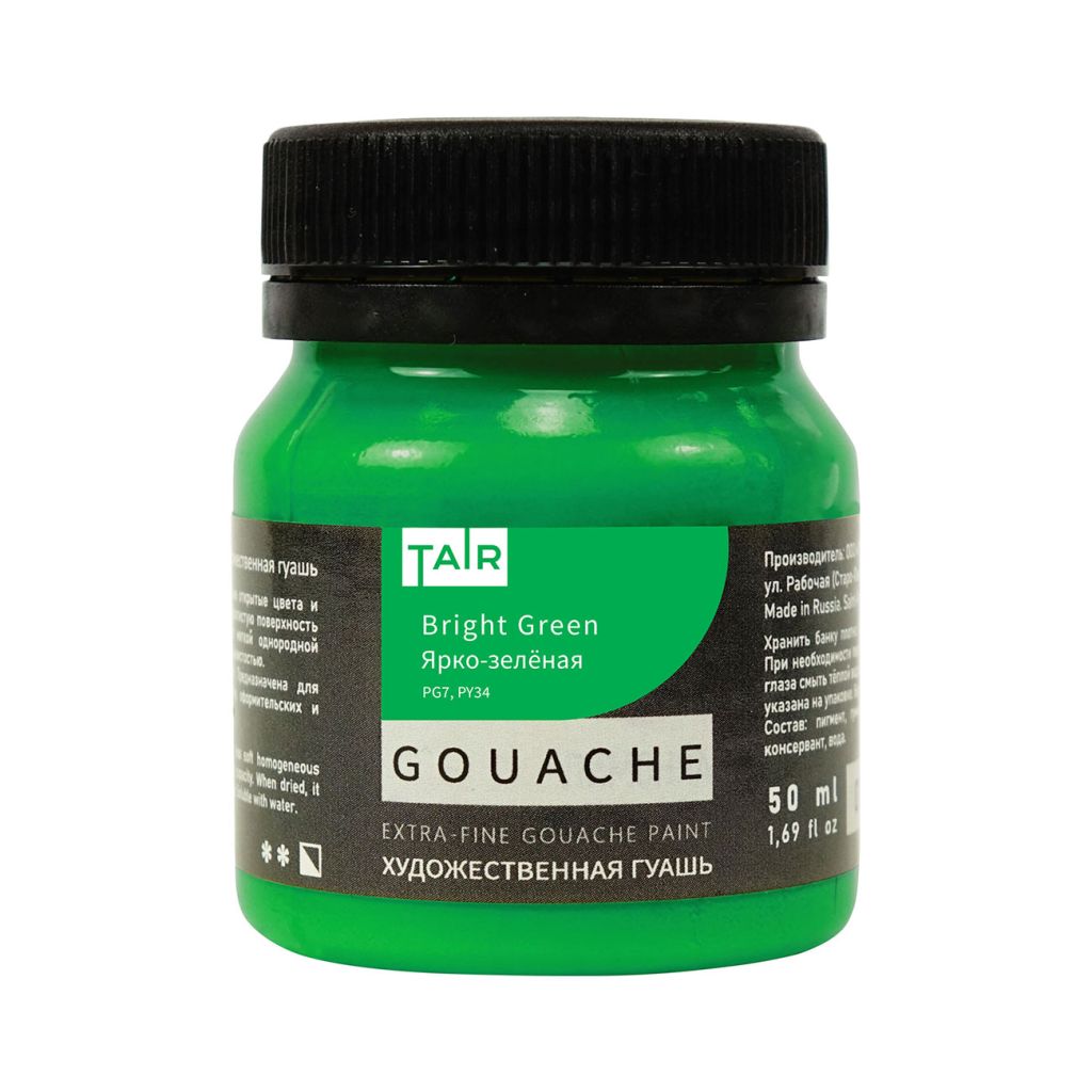 Гуашь художественная выпускается компанией «Таир», которая была основана в 1997 году в Санкт-Петербурге. Компания постоянно развивается и уже более 15 лет успешно работает на рынке художественных материалов. Гуашь производства компании «Таир» изготавливается на основе растительного клеевого состава с добавлением красящих пигментов. Применяется для живописи, декоративно-прикладного творчества, дизайнерских и оформительских работ. Краска обладает высокой степенью укрывистости, размывается водой. При высыхании приобретает бархатистый матовый оттенок. Гуашь художественная производства компании «Таир» выпускается палитрой, из 38 цветов. Предлагается в баночках по 50 миллилитров.