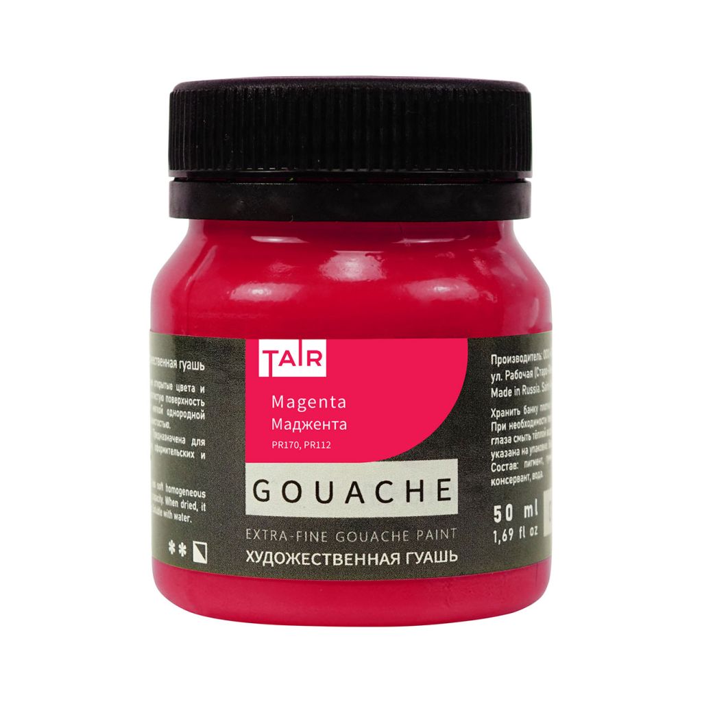 Гуашь художественная выпускается компанией «Таир», которая была основана в 1997 году в Санкт-Петербурге. Компания постоянно развивается и уже более 15 лет успешно работает на рынке художественных материалов. Гуашь производства компании «Таир» изготавливается на основе растительного клеевого состава с добавлением красящих пигментов. Применяется для живописи, декоративно-прикладного творчества, дизайнерских и оформительских работ. Краска обладает высокой степенью укрывистости, размывается водой. При высыхании приобретает бархатистый матовый оттенок. Гуашь художественная производства компании «Таир» выпускается палитрой, из 38 цветов. Предлагается в баночках по 50 миллилитров.