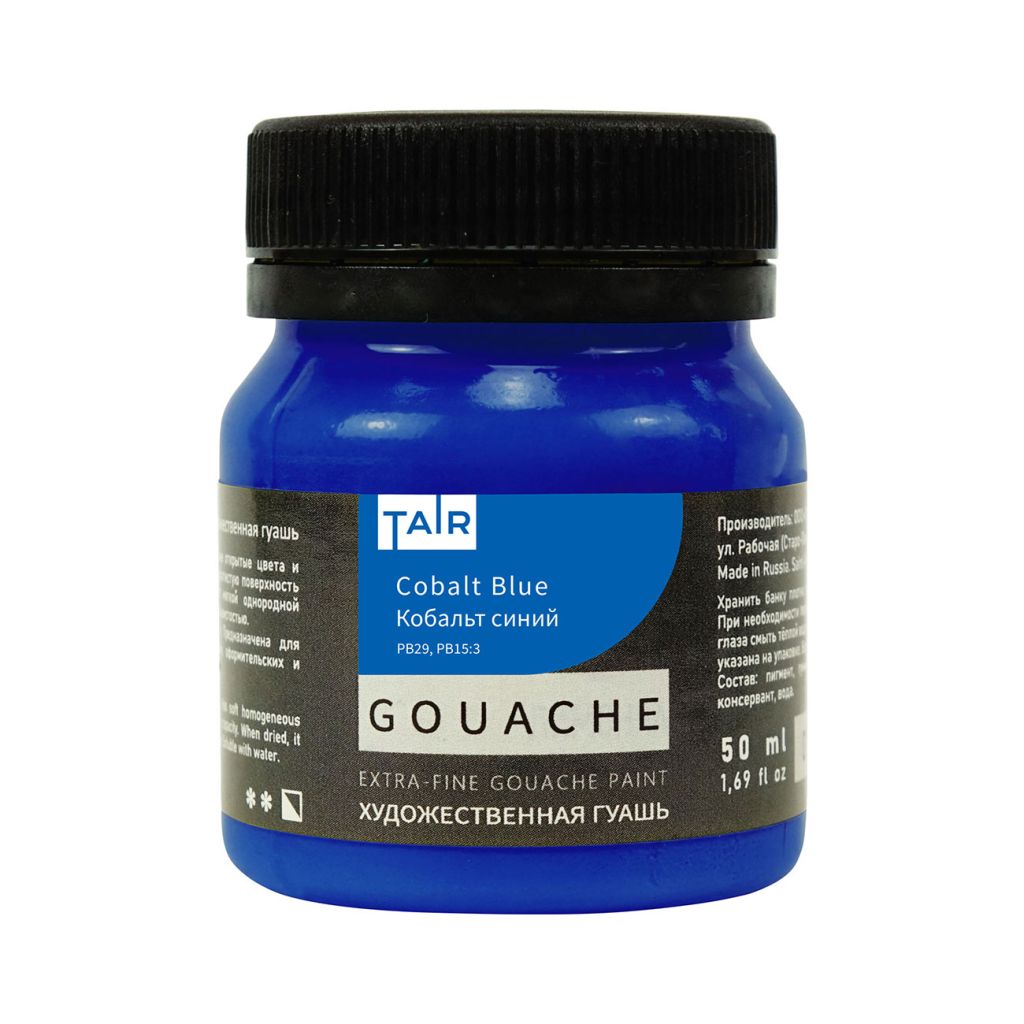 Гуашь художественная выпускается компанией «Таир», которая была основана в 1997 году в Санкт-Петербурге. Компания постоянно развивается и уже более 15 лет успешно работает на рынке художественных материалов. Гуашь производства компании «Таир» изготавливается на основе растительного клеевого состава с добавлением красящих пигментов. Применяется для живописи, декоративно-прикладного творчества, дизайнерских и оформительских работ. Краска обладает высокой степенью укрывистости, размывается водой. При высыхании приобретает бархатистый матовый оттенок. Гуашь художественная производства компании «Таир» выпускается палитрой, из 38 цветов. Предлагается в баночках по 50 миллилитров.