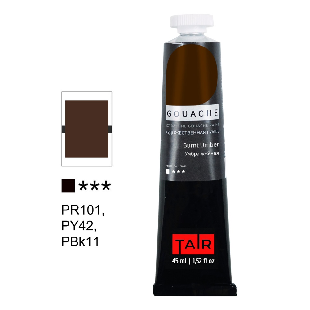 Профессиональная художественная гуашь в тубе, сочетает в себе яркие открытые цвета и восхитительную матовую бархатистую поверхность после высыхания. Краски обладают высокой степенью укрывистости и хорошими показателями светостойкости в зависимости от пигментного состава. Хорошо сохраняет цвет при разведении водой благодаря высокой насыщенности пигментами. После высыхания может слегка менять оттенок, но цвета остаются по-прежнему яркими и насыщенными. Профессиональная гуашь предназначена в первую очередь для живописи, графики, плакатов, эскизов и других живописных работ, но также она подходит и для всех видов декоративно-прикладного творчества и для занятий с детьми. Особенности работы: Для работы с гуашью используются мягкие кисти: колонок, белка или синтетика. При желании краски разводятся водой до получения полупрозрачного красочного слоя. Работать с гуашью можно при температуре окружающей среды выше 10 °С. Краска водорастворима. После высыхания изображение, нанесенное гуашью, можно смыть водой.