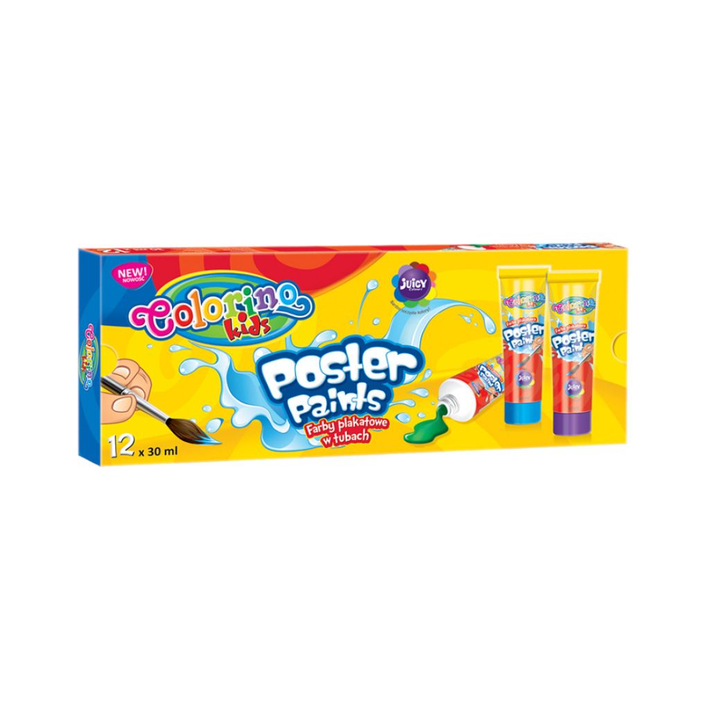 Гуашь плакатная Colorino — это краски, которые легко наносить на поверхность бумаги, картона, дерева и прочие, и которые легко смыть с рук и одежды с помощью простых моющих средств. Краски отлично подходят для детского творчества и оформительских работ. Гуашь Colorino имеет интенсивные цвета и покрывает поверхность красивым непрозрачным бархатистым слоем. Краски можно смешивать. Они очень эффектно смотрятся и позволяют создать яркие работы даже самым юным художникам. Плакатная гуашь Colorino прошла международную сертификацию, подтверждающую, что краски безопасны для человека и окружающей среды.