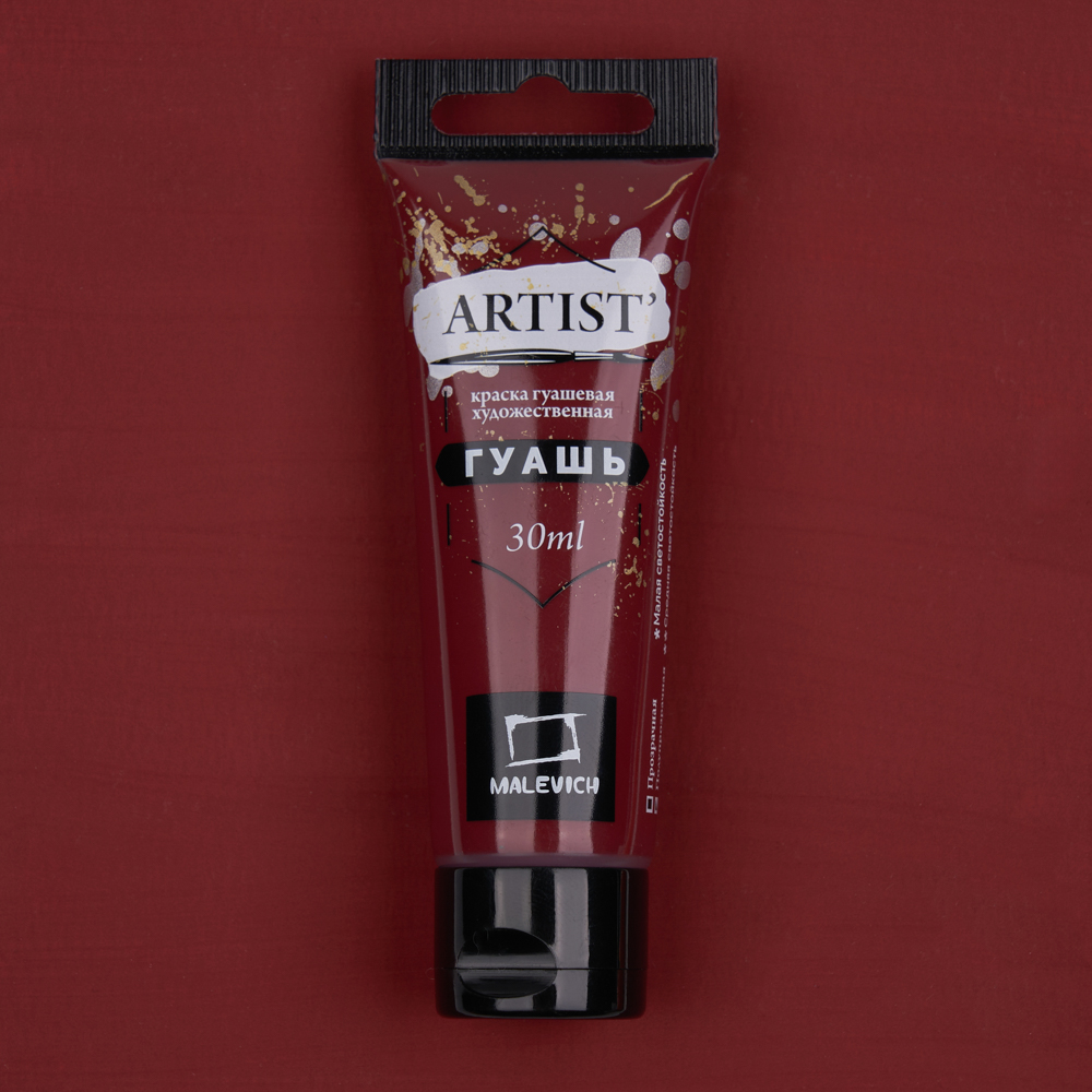 Гуашь «Малевичъ» — это водорастворимая, комфортная для работы краска с приятной кремовой консистенцией и повышенной концентрацией пигмента. Высокая кроющая способность позволяет наносить четкие мелкие непрозрачные детали светлых тонов на фон темного оттенка. Краски отлично ложатся, имеют яркие, насыщенные цвета. После высыхания поверхность становится бархатисто-матовой. Подходит как для начинающих художников, так и для профессионалов. Серия гуаши в тубах представлена поштучно и в наборах различной комплектации.