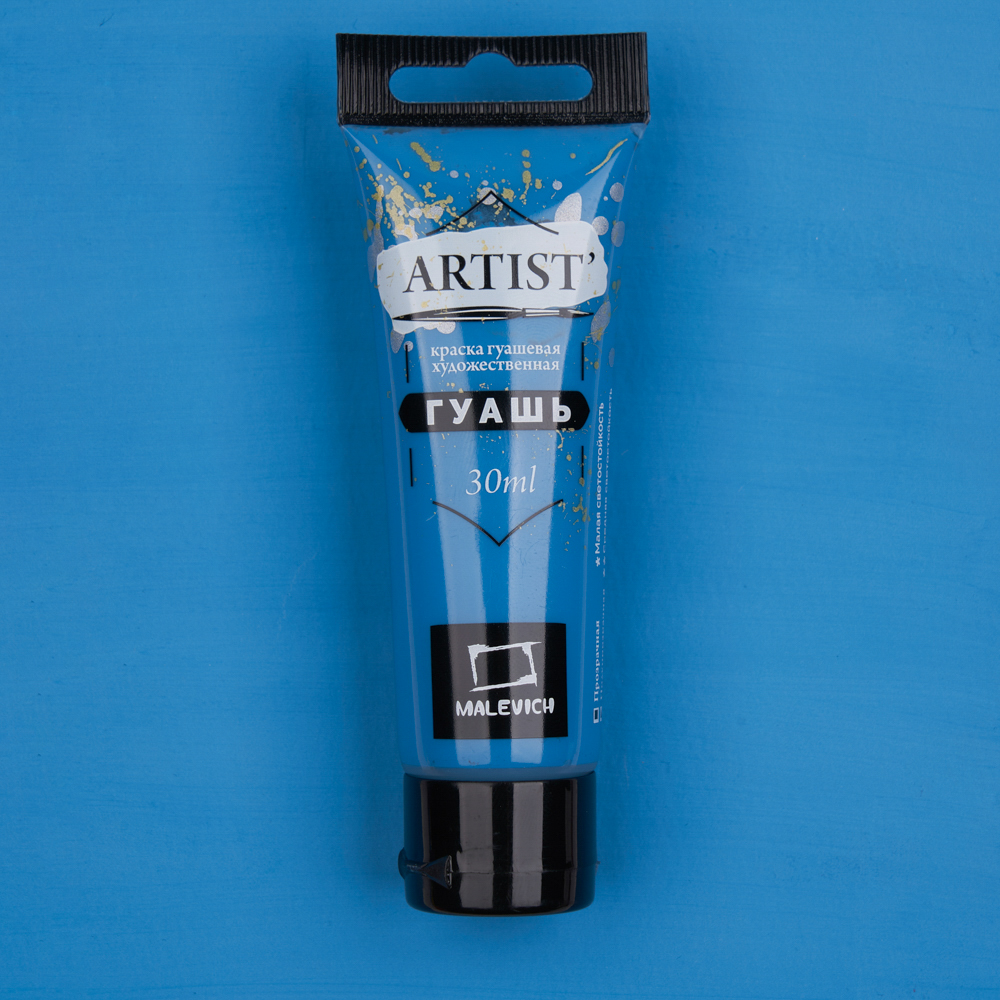 Гуашь «Малевичъ» — это водорастворимая, комфортная для работы краска с приятной кремовой консистенцией и повышенной концентрацией пигмента. Высокая кроющая способность позволяет наносить четкие мелкие непрозрачные детали светлых тонов на фон темного оттенка. Краски отлично ложатся, имеют яркие, насыщенные цвета. После высыхания поверхность становится бархатисто-матовой. Подходит как для начинающих художников, так и для профессионалов. Серия гуаши в тубах представлена поштучно и в наборах различной комплектации.