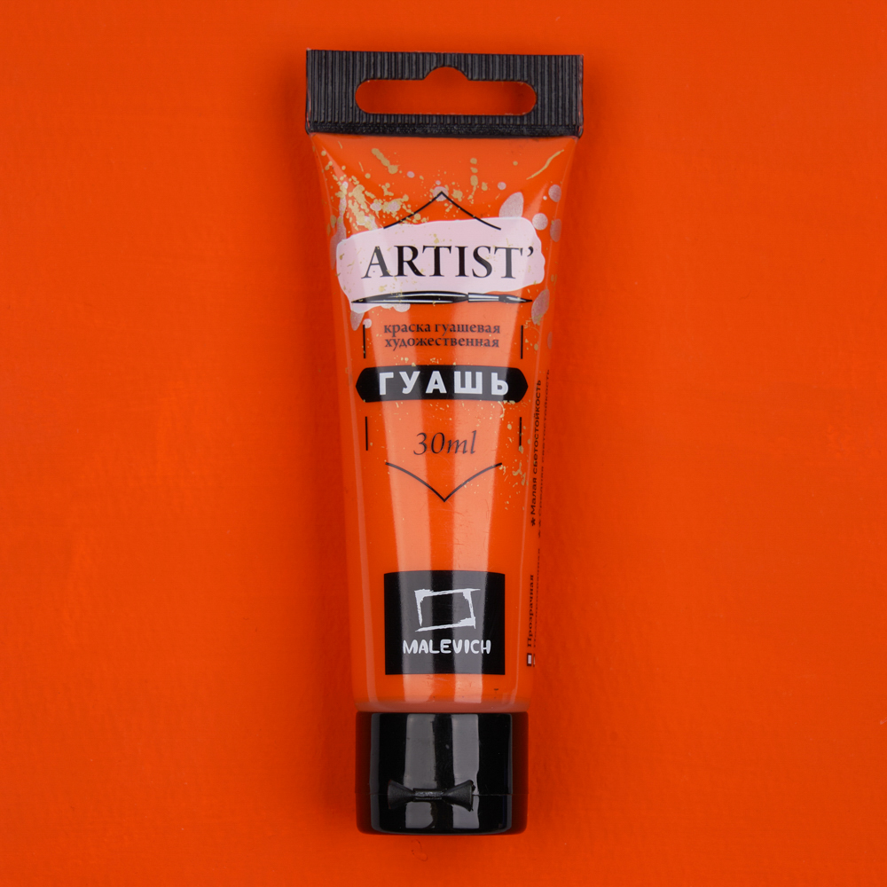 Гуашь «Малевичъ» — это водорастворимая, комфортная для работы краска с приятной кремовой консистенцией и повышенной концентрацией пигмента. Высокая кроющая способность позволяет наносить четкие мелкие непрозрачные детали светлых тонов на фон темного оттенка. Краски отлично ложатся, имеют яркие, насыщенные цвета. После высыхания поверхность становится бархатисто-матовой. Подходит как для начинающих художников, так и для профессионалов. Серия гуаши в тубах представлена поштучно и в наборах различной комплектации.