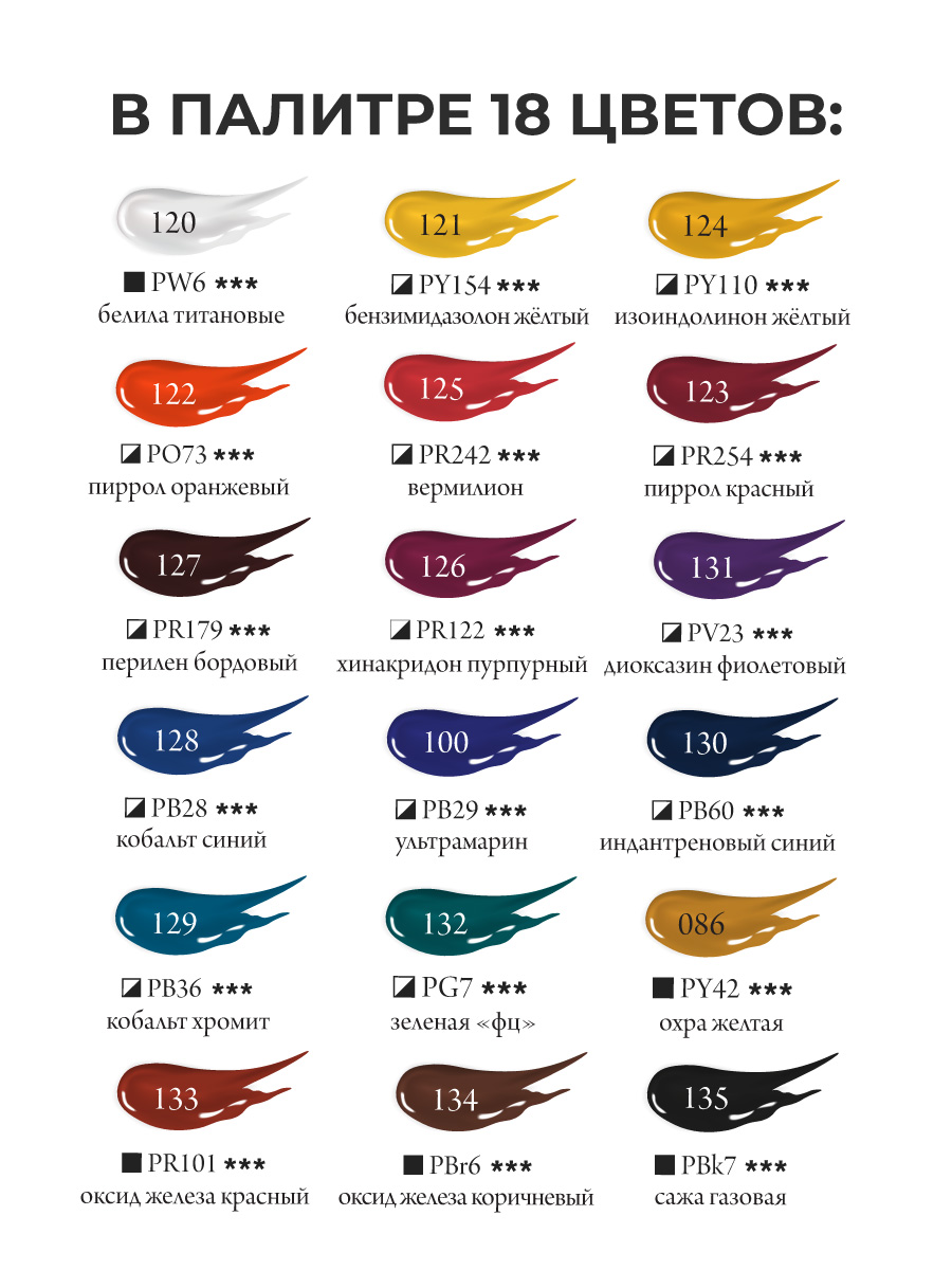 Набор гуашевых красок True Pigments создан нп основе профессиональных художественных пигментов, обладающих максимальными параметрами светостойкости, которые востребованы художниками по всему миру. Все 18 цветов набора являются монопигментными и открывают блестящие возможности для получения чистых и звонких смесей. Водорастворимые краски с приятной кремовой консистенцией и повышенной концентрацией пигмента. Отличная кроющая способность позволяет наносить четкие мелкие непрозрачные детали светлых цветов на фон более темного оттенка. После высыхания поверхность становится бархатисто-матовой. Подходит для профессионалов и начинающих художников.