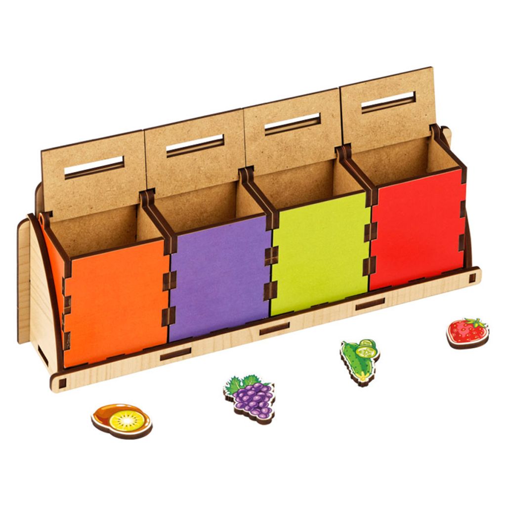 Развивающая игрушка сортер-комодик «Фрукты, ягоды, овощи» бренда «ТРИ СОВЫ» объединяет сразу несколько интересных игр и занятий: вкладыши, сортировка, счет и сравнение предметов. Игрушка выполнена из ДВП высокой плотности и бумаги. Размер – 25.5*5,5*9см. Комодик состоит из корпуса, четырех цветных ящиков и 20 фигур. Задача ребенка распределить фрукты, овощи и ягоды по цвету в соответствующие ящики.