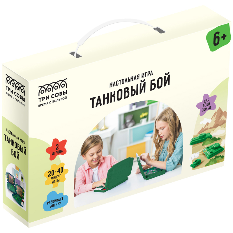 Настольная игра для детей и взрослых. Соперничают два игрока. Они берут по одному игровому набору, садятся так, чтобы не видеть поле противника, и готовятся к сражению. Внимание! Расположенные на игровом поле танки не должны соприкасаться, то есть минимальное расстояние между ними - одна клетка. Переставлять свои танки после начала игры категорически запрещено. После того, как танки расставлены, можно начинать. Стрельбу ведут по очереди: "Промах" - игрок не попал в танк, переход хода. "Ранил" - попал в танк, но не уничтожил. Игрок продолжает стрелять до "промаха". "Подбил" - танк уничтожен. Игрок продолжает стрелять до "промаха". Победителем считается тот игрок, который потопил все танки противника. Комплект игры состоит из 2-х игровых наборов в каждый из которых входят: - Игровое поле с экраном - 1 шт; - Тяжелый танк - 1 шт; - Средний танк - 2 шт; - БТР - 3 шт; - Бронемашина - 4 шт; - Белые фишки - 150 шт; - Красные фишки - 40 шт. Желаем Вам интересной игры!