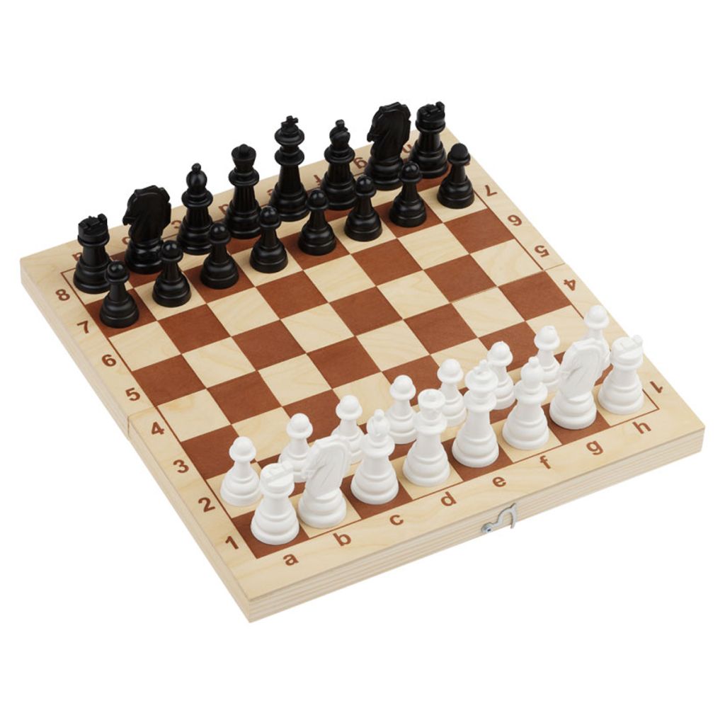 Игра настольная «Шахматы и шашки». В состав входят: 1. Деревянная доска (футляр) 290*290 мм – 1 шт., размер доски в разложенном виде 290*290*20 мм, размер клетки 33*33 мм; 2. 2 комплекта пластиковых шахматных фигур (16 темных и 16 светлых), в состав одного комплекта входит: король – 1 шт., ферзь – 1 шт., слон – 2 шт., конь – 2 шт., ладья – 2 шт., пешка – 8 шт. Размеры шахматных фигур высота/диаметр основания: король 70 мм*d 25 мм, ферзь 60 мм*d 25 мм, слон 50 мм* d 25 мм, конь 47 мм* d 25 мм, ладья 40 мм*d25 мм, пешка 40 мм*d 25 мм. Два комплекта пластиковых фишек (12 темных и 12 светлых), размеры фишек – 8 мм*d25 мм. Игра в шахматы и шашки развивает образное и логическое мышление, комбинаторику, память, внимательность, терпение.